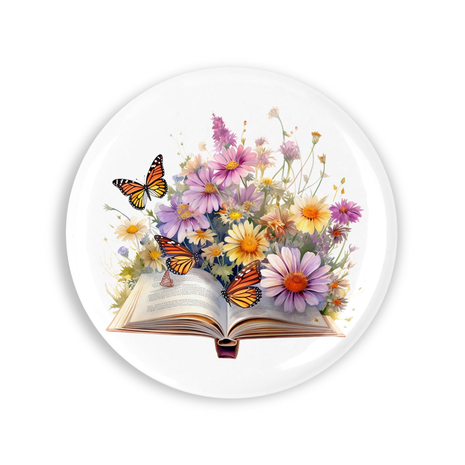- Set 4 insigne, Carte si flori Farfala, NO3516, Metal, 44 mm, Multicolor