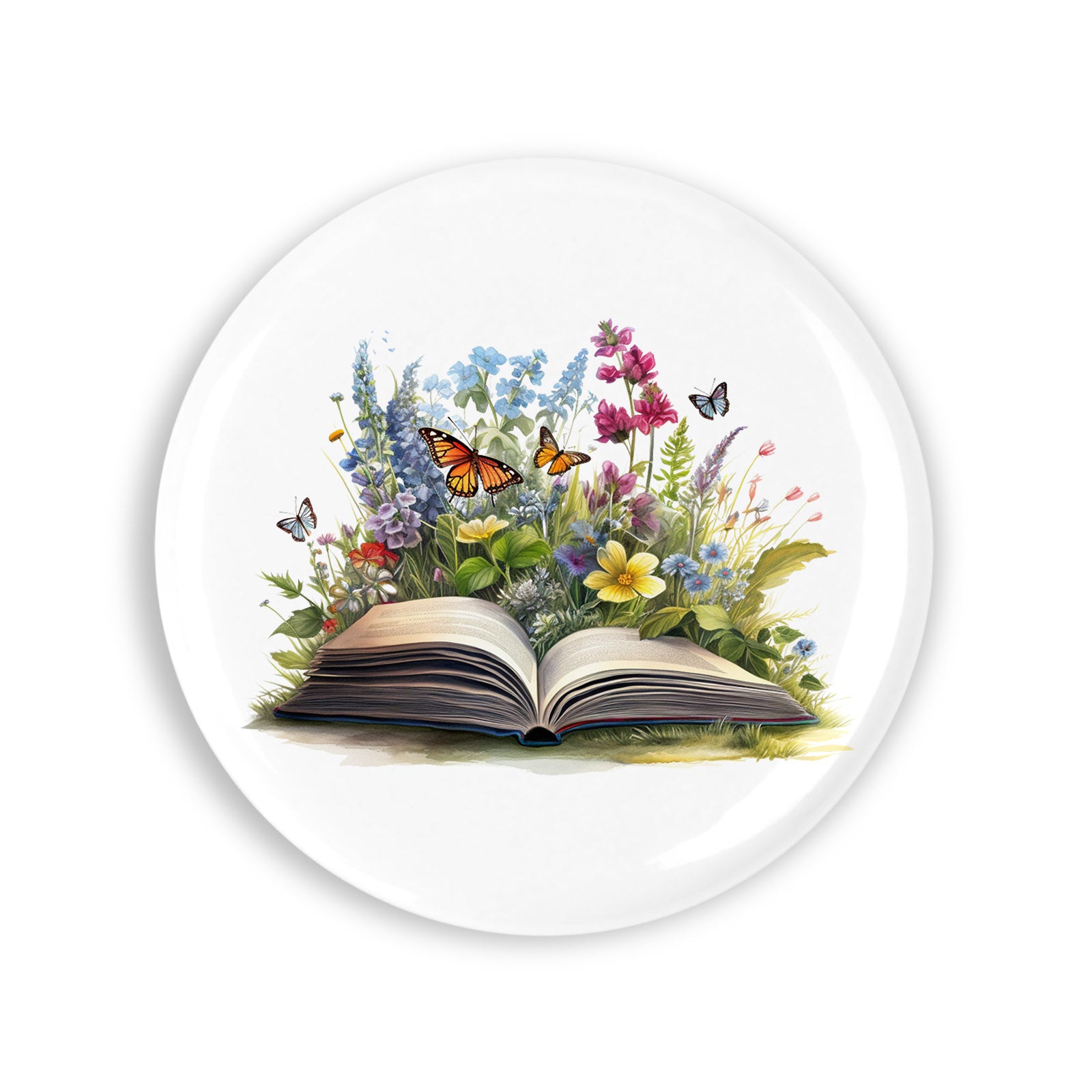 - Set 4 insigne, Carte si flori Noelia, NO6088, Metal, 44 mm, Multicolor