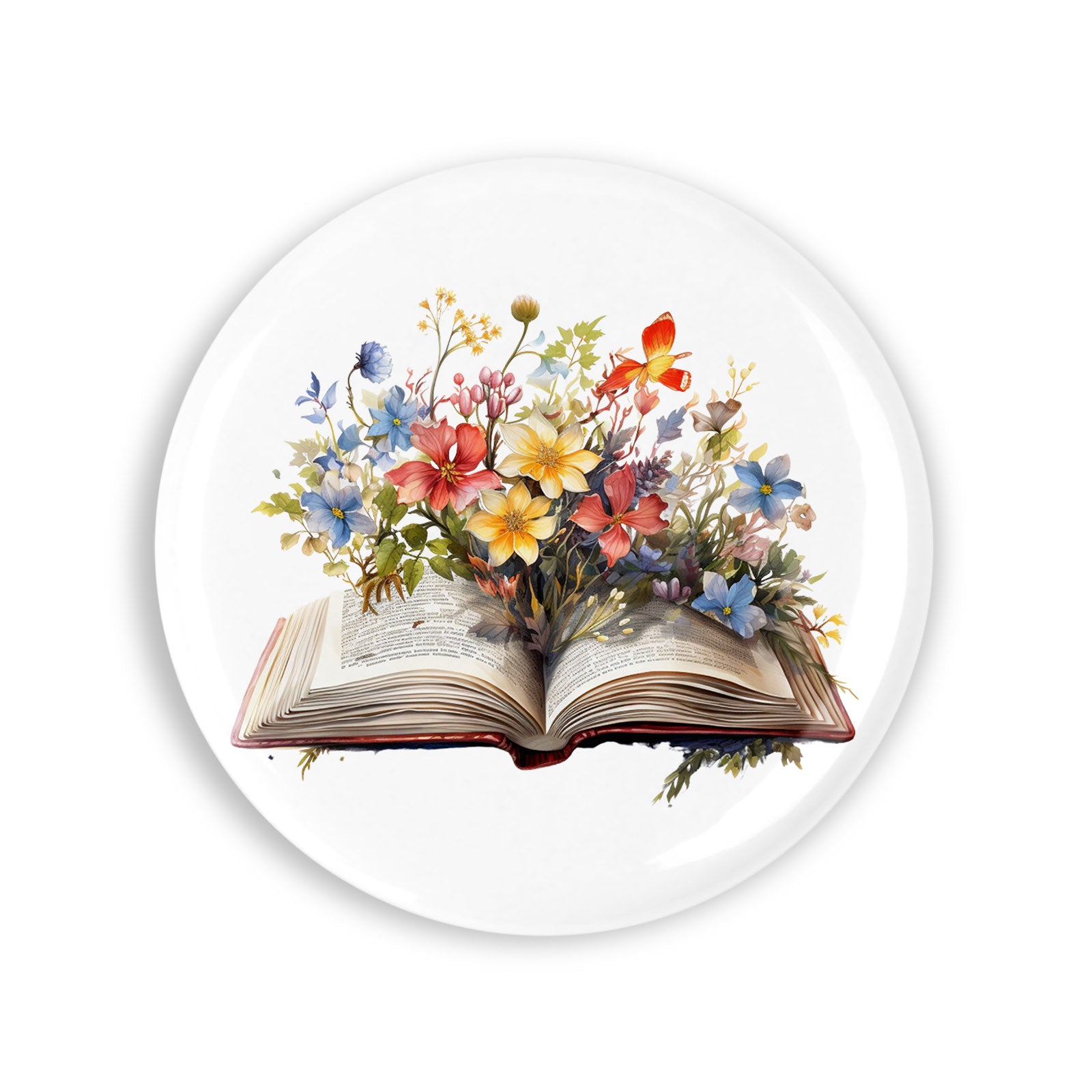 - Set 4 insigne, Carte si flori Sara, NO855, Metal, 44 mm, Multicolor