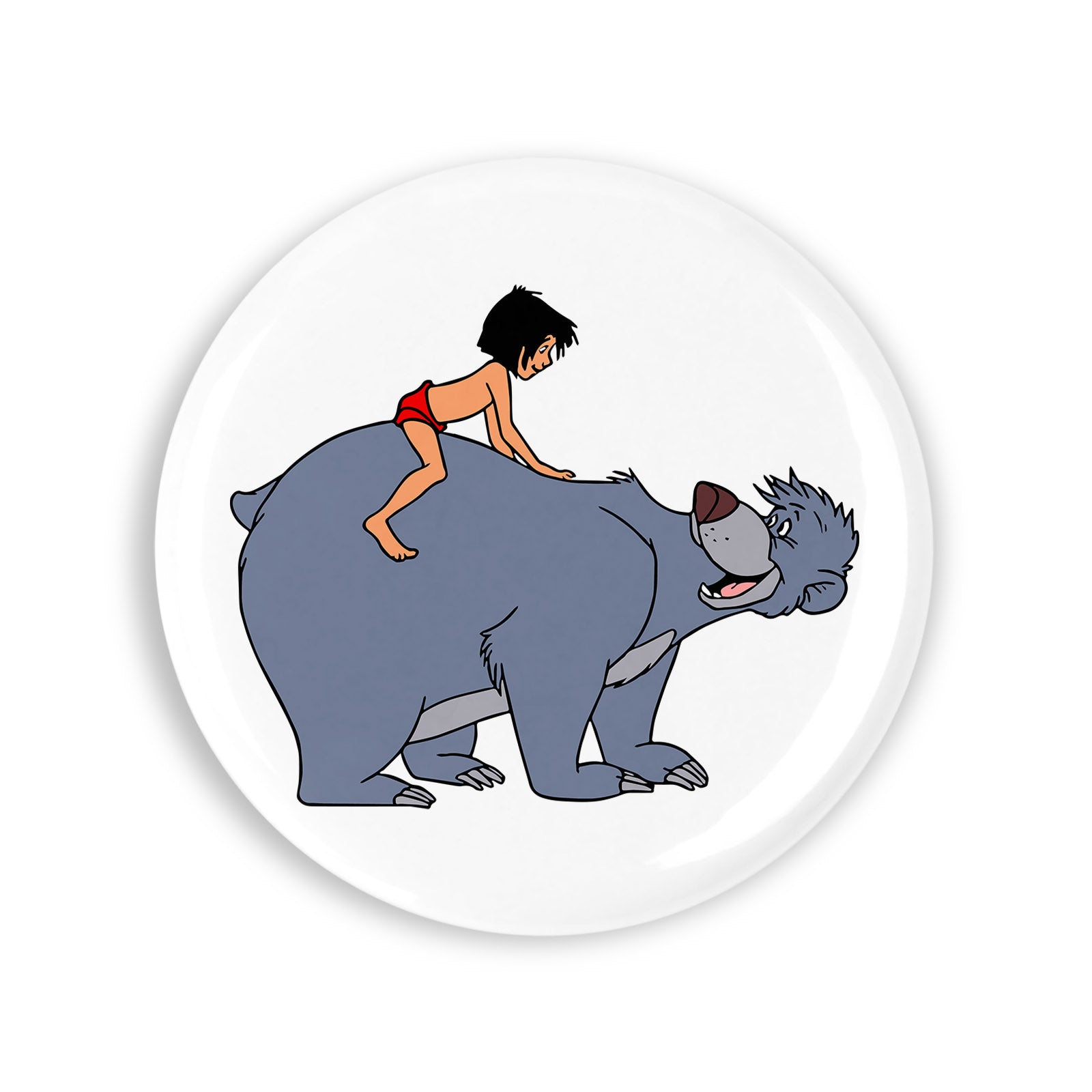 - Set 4 insigne, Cartea junglei Mougli il calareste pe Baloo, NO013, Metal, 44 mm, Multicolor