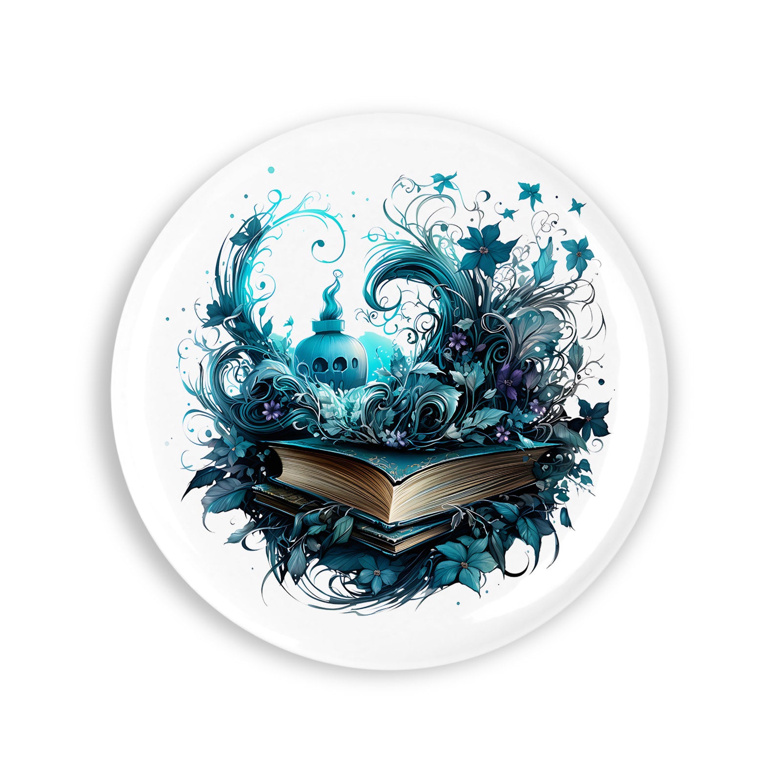 - Set 4 insigne, Carti magice potiuni si flori, NO050, Metal, 44 mm, Multicolor