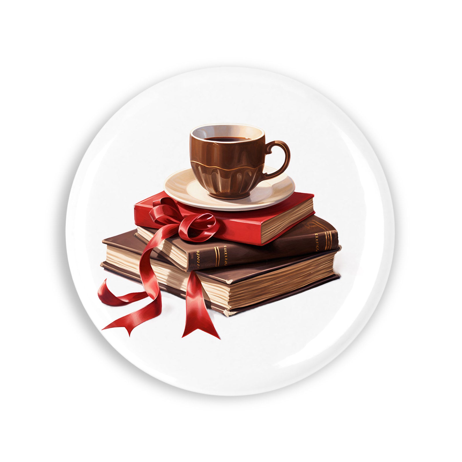 - Set 4 insigne, Carti si ceasca cu cafea, NO4606, Metal, 44 mm, Multicolor