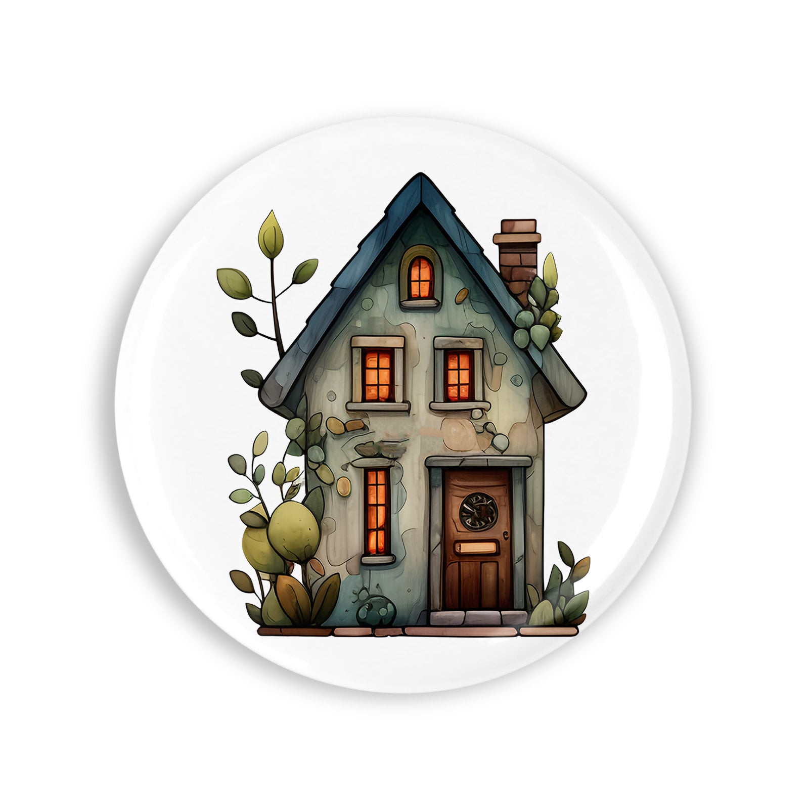 - Set 4 insigne, Casa verde cu plante verzi, NO5177, Metal, 44 mm, Multicolor