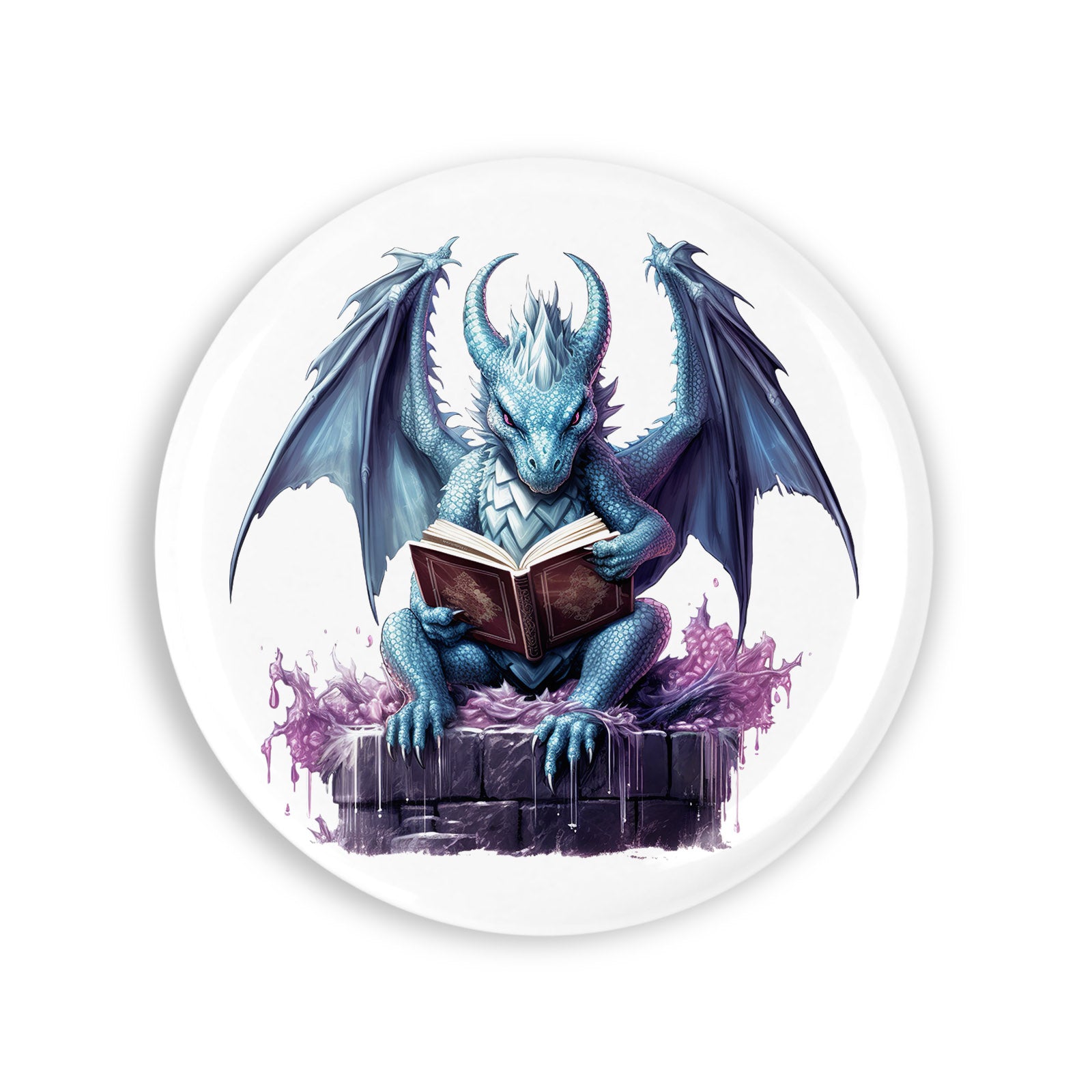 - Set 4 insigne, Dragonul cu coarne citeste carti, NO732, Metal, 44 mm, Multicolor