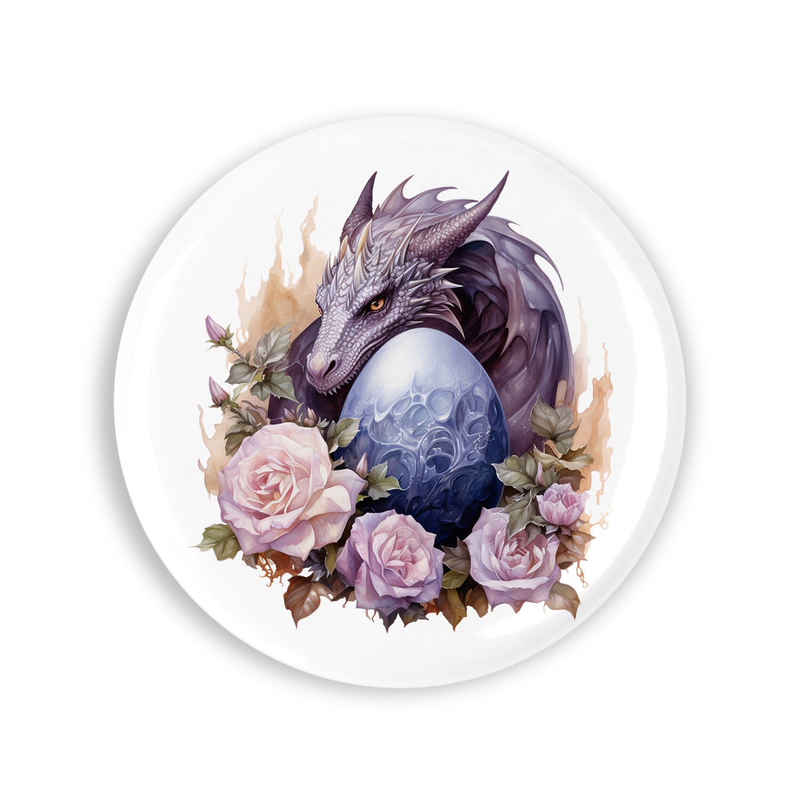 - Set 4 insigne, Dragonul cu ou albastru si trandafiri, NO2691, Metal, 44 mm, Multicolor