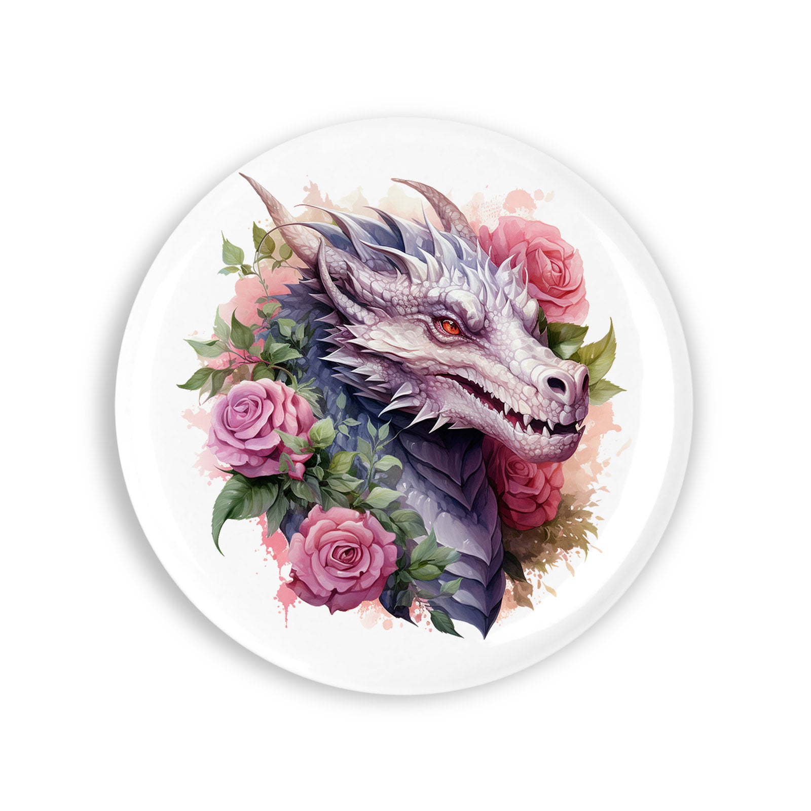 - Set 4 insigne, Dragonul cu trandafiri mov, NO5971, Metal, 44 mm, Multicolor