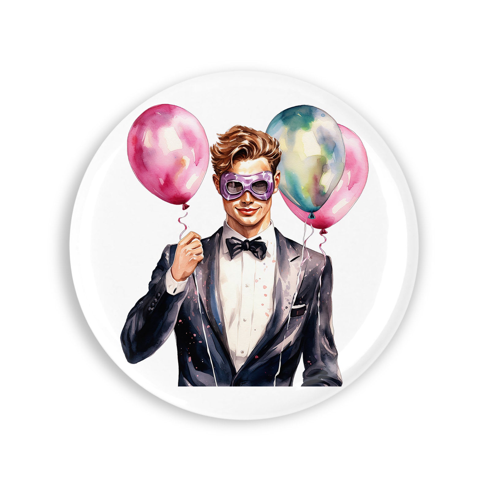 - Set 4 insigne, Invitatie Revelion Bryan, NO4807, Metal, 44 mm, Multicolor