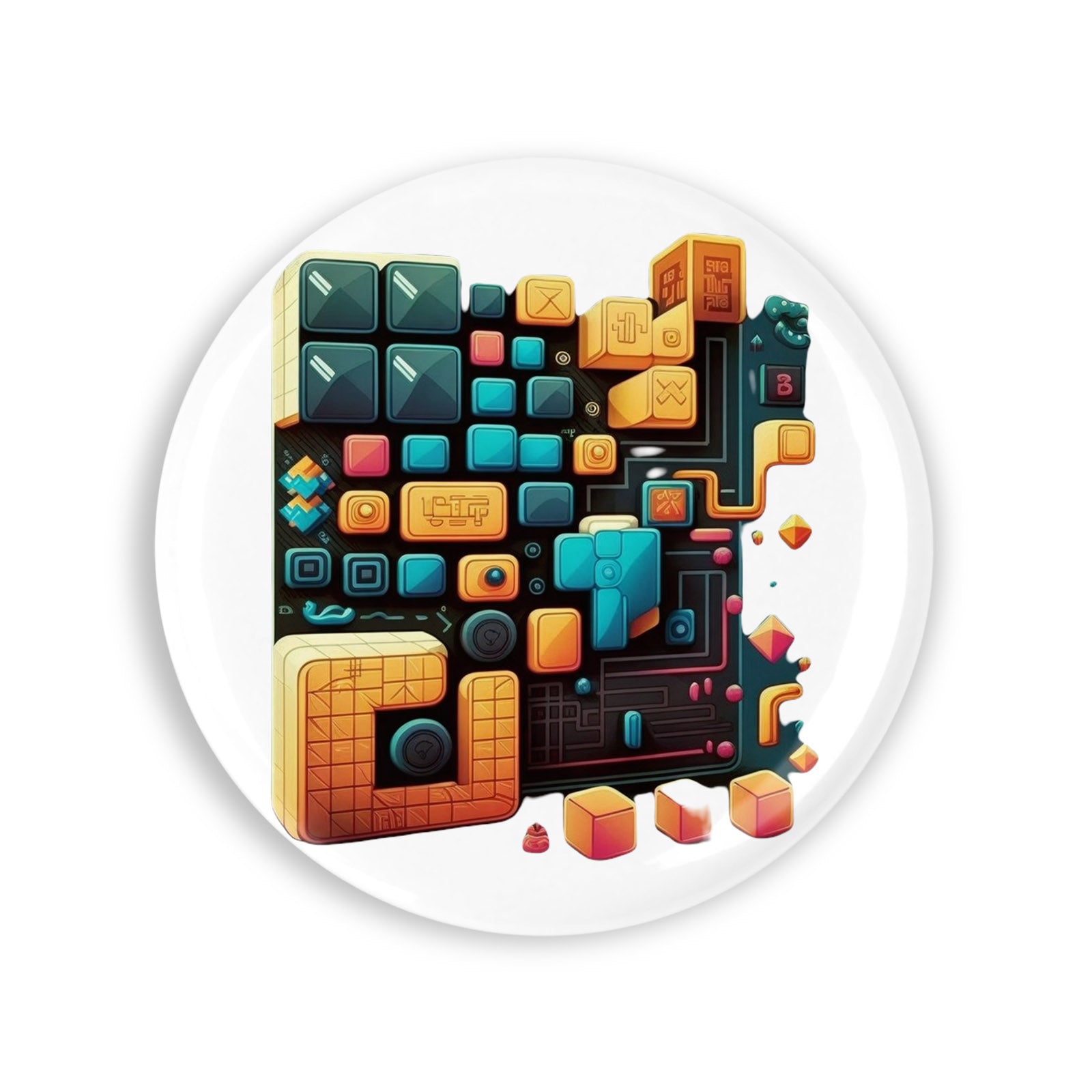 - Set 4 insigne, Joc puzzle cu cuburi colorate, NO10632, Metal, 44 mm, Multicolor