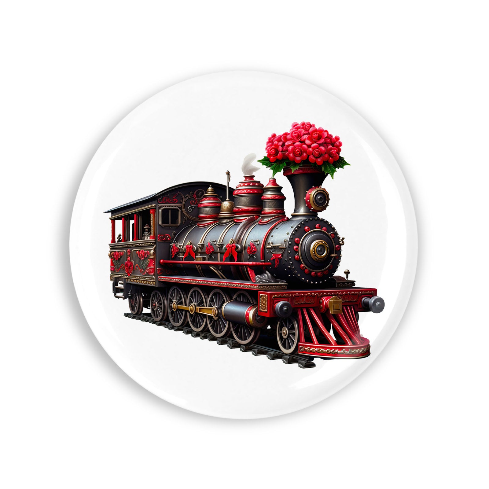 - Set 4 insigne, Locomotiva cu aburi negru cu rosu, NO4297, Metal, 44 mm, Multicolor