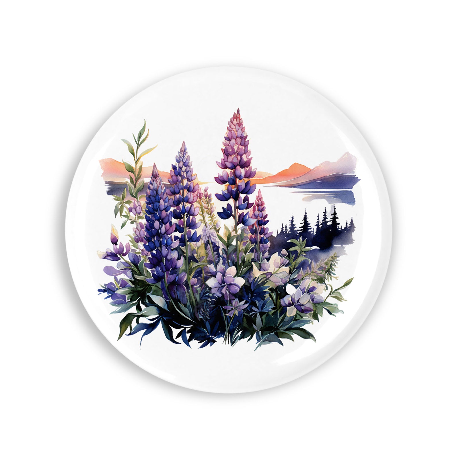 - Set 4 insigne, Lupin inflorit langa lac, NO4564, Metal, 44 mm, Multicolor