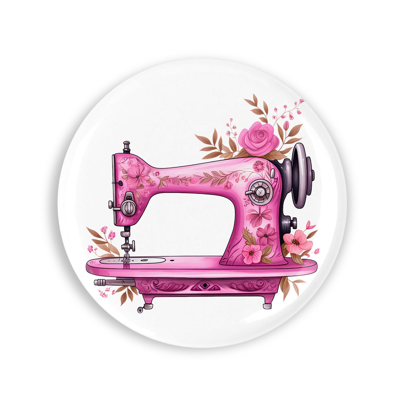 - Set 4 insigne, Masina de cusut roz, NO6040, Metal, 44 mm, Multicolor