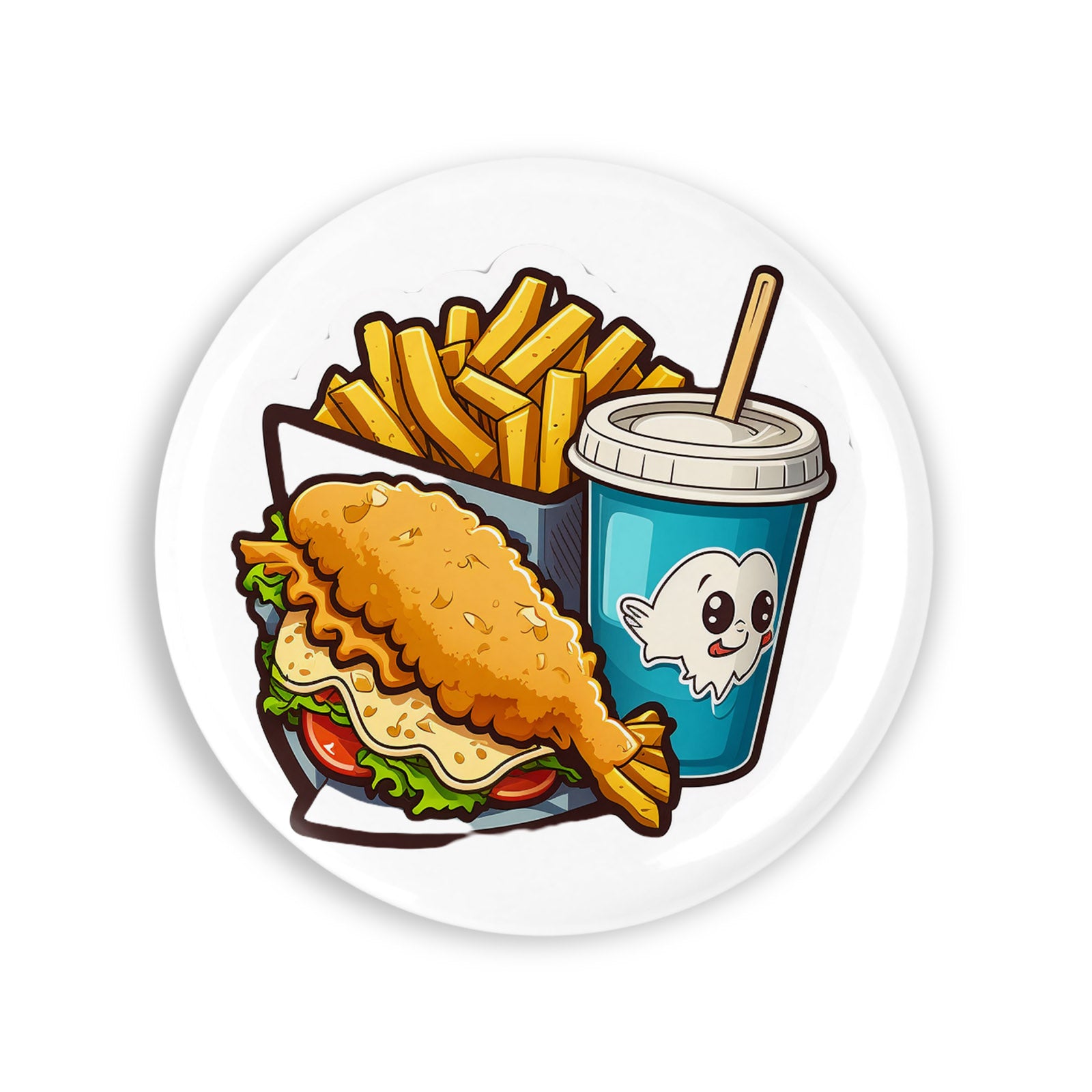 - Set 4 insigne, Meniu cu peste si cartofi prajiti, NO10899, Metal, 44 mm, Multicolor