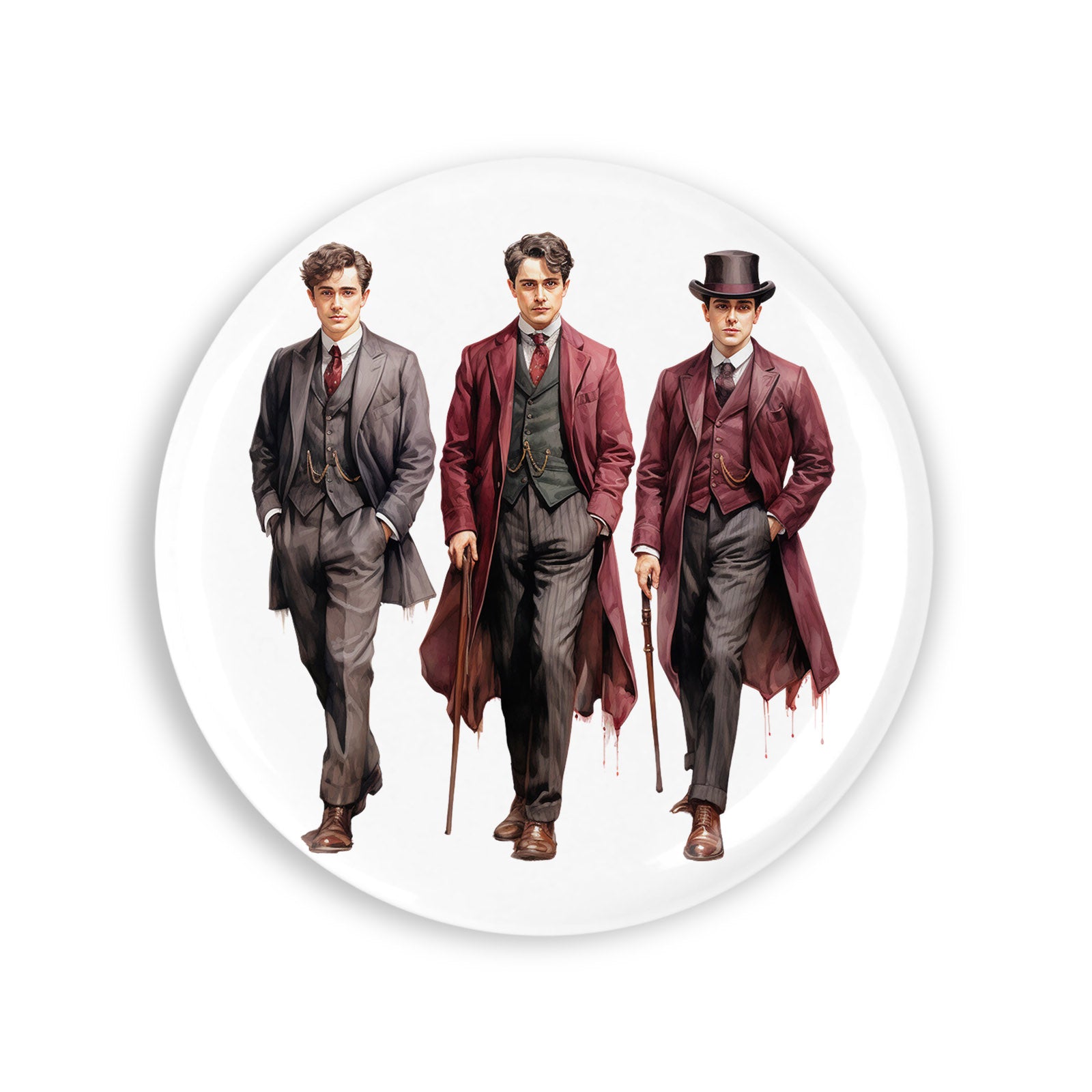 - Set 4 insigne, Moda victoriana barbati in costume rosu maro, NO1239, Metal, 44 mm, Multicolor