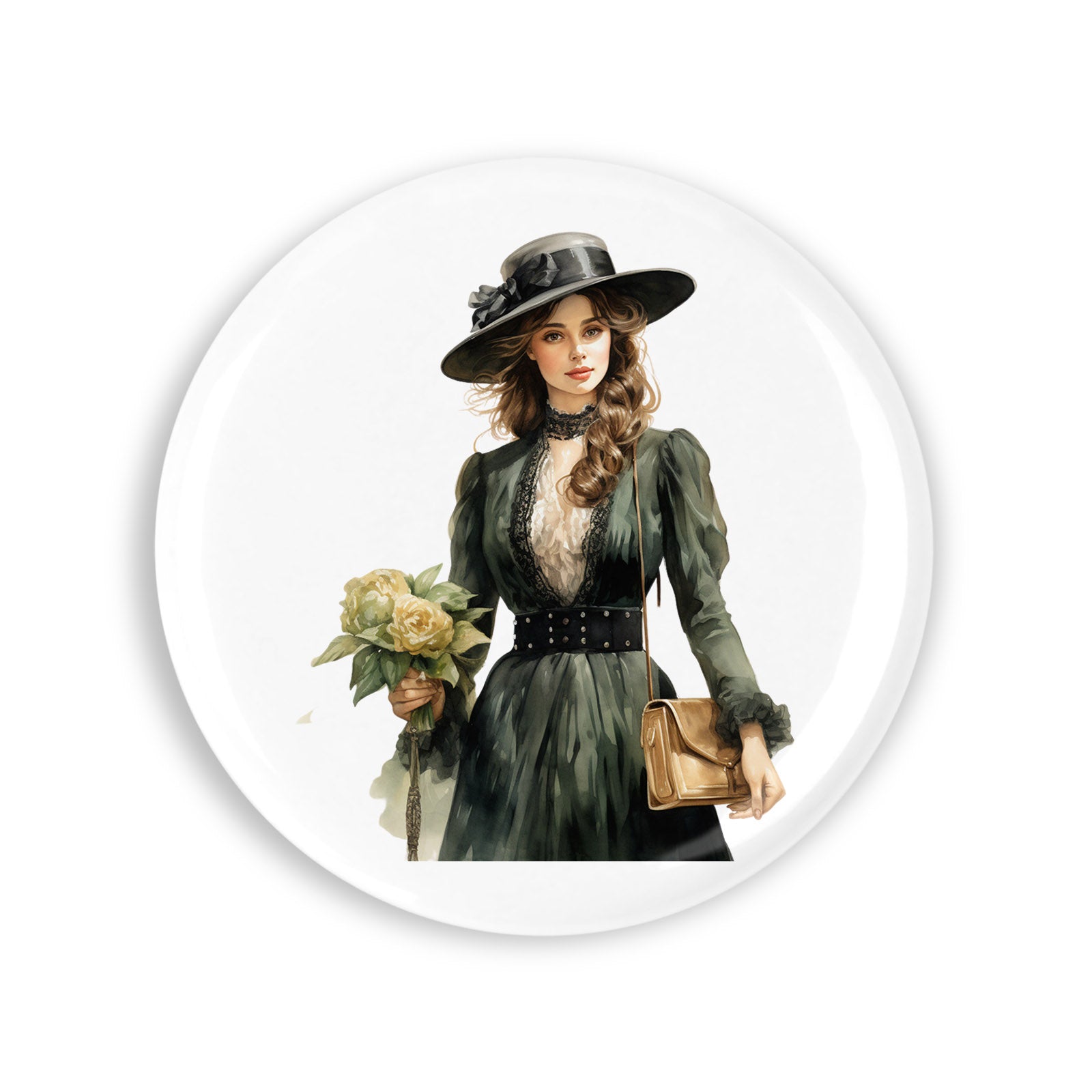 - Set 4 insigne, Moda victoriana femeie cu rochie Jessica, NO2523, Metal, 44 mm, Multicolor