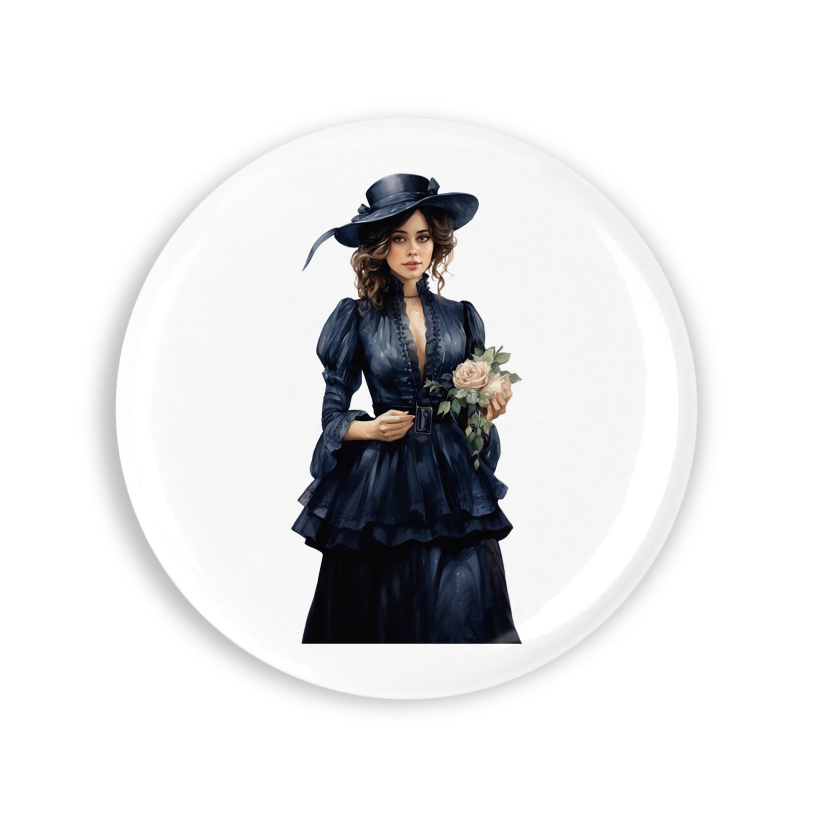 - Set 4 insigne, Moda victoriana femeie cu rochie Lexica, NO2931, Metal, 44 mm, Multicolor