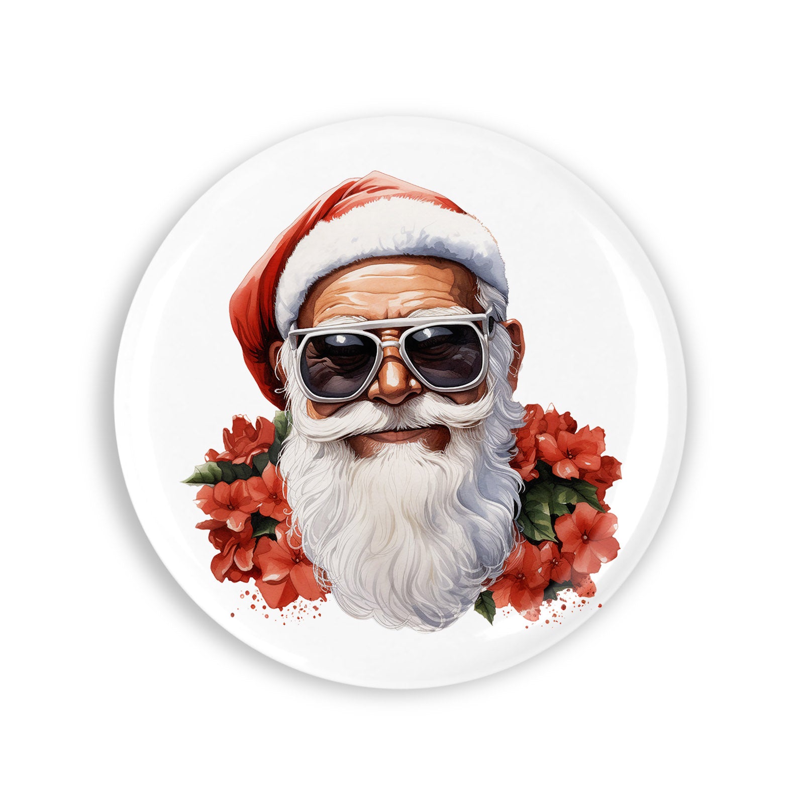- Set 4 insigne, Mos Craciun cu flori, NO6415, Metal, 44 mm, Multicolor