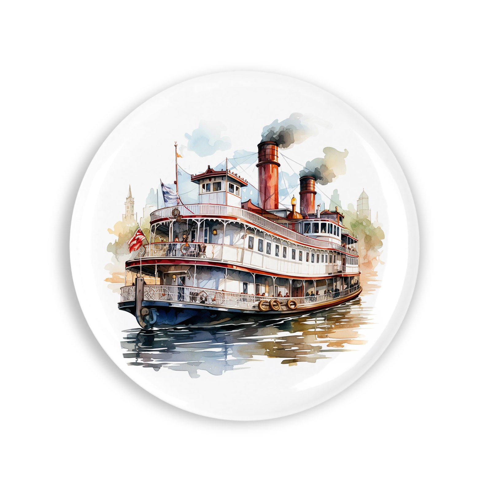- Set 4 insigne, Nava cu aburi alba, NO3751, Metal, 44 mm, Multicolor
