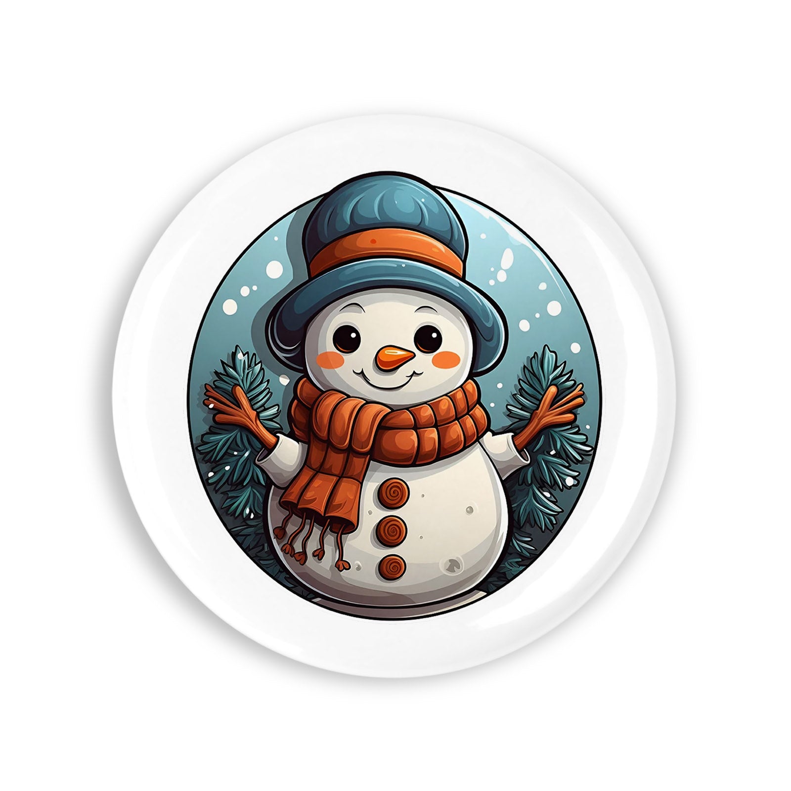 - Set 4 insigne, Omul de zapada cu caciula albastra, NO110, Metal, 44 mm, Multicolor