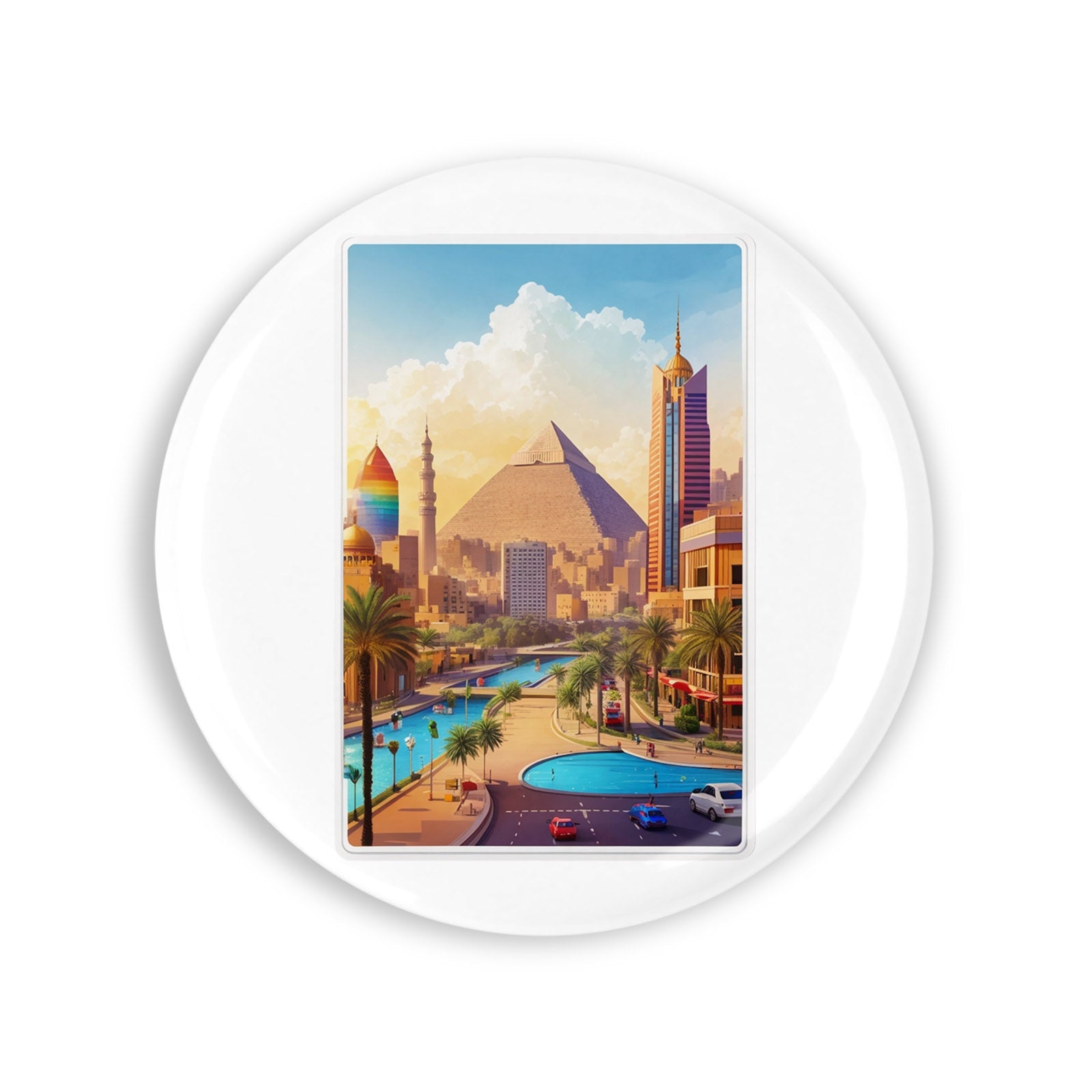 - Set 4 insigne, Orasul Cairo cu piramide si minarete, NO7909, Metal, 44 mm, Multicolor
