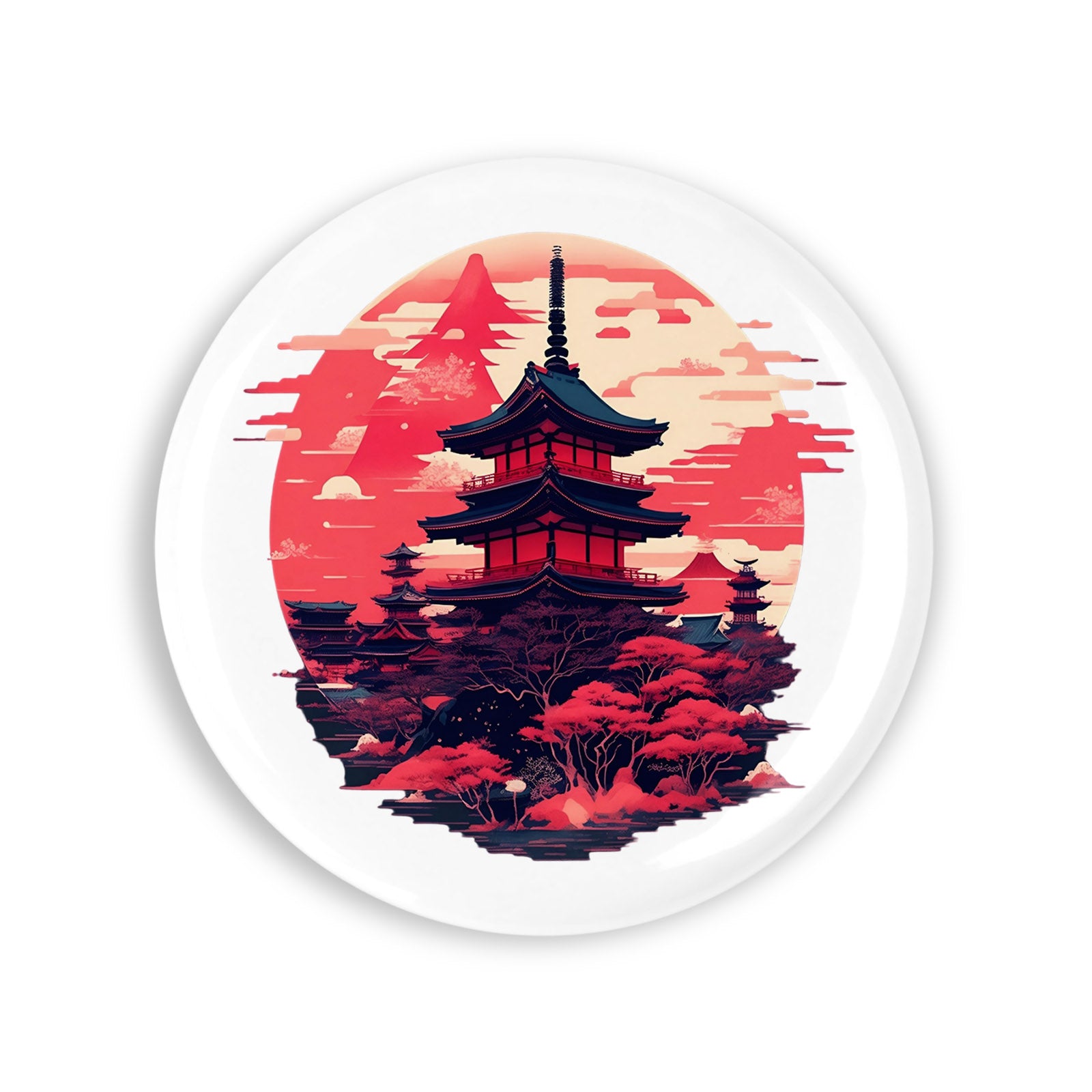 - Set 4 insigne, Pagoda japoneza in apus, NO6678, Metal, 44 mm, Multicolor