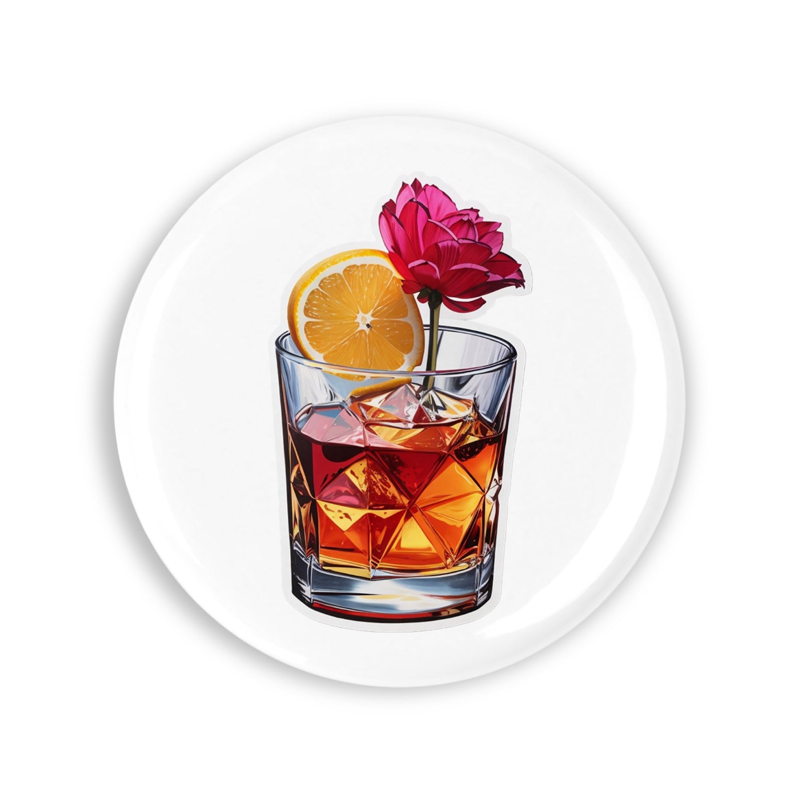 - Set 4 insigne, Pahar de cockail Sazerac cu trandafir, NO8838, Metal, 44 mm, Multicolor