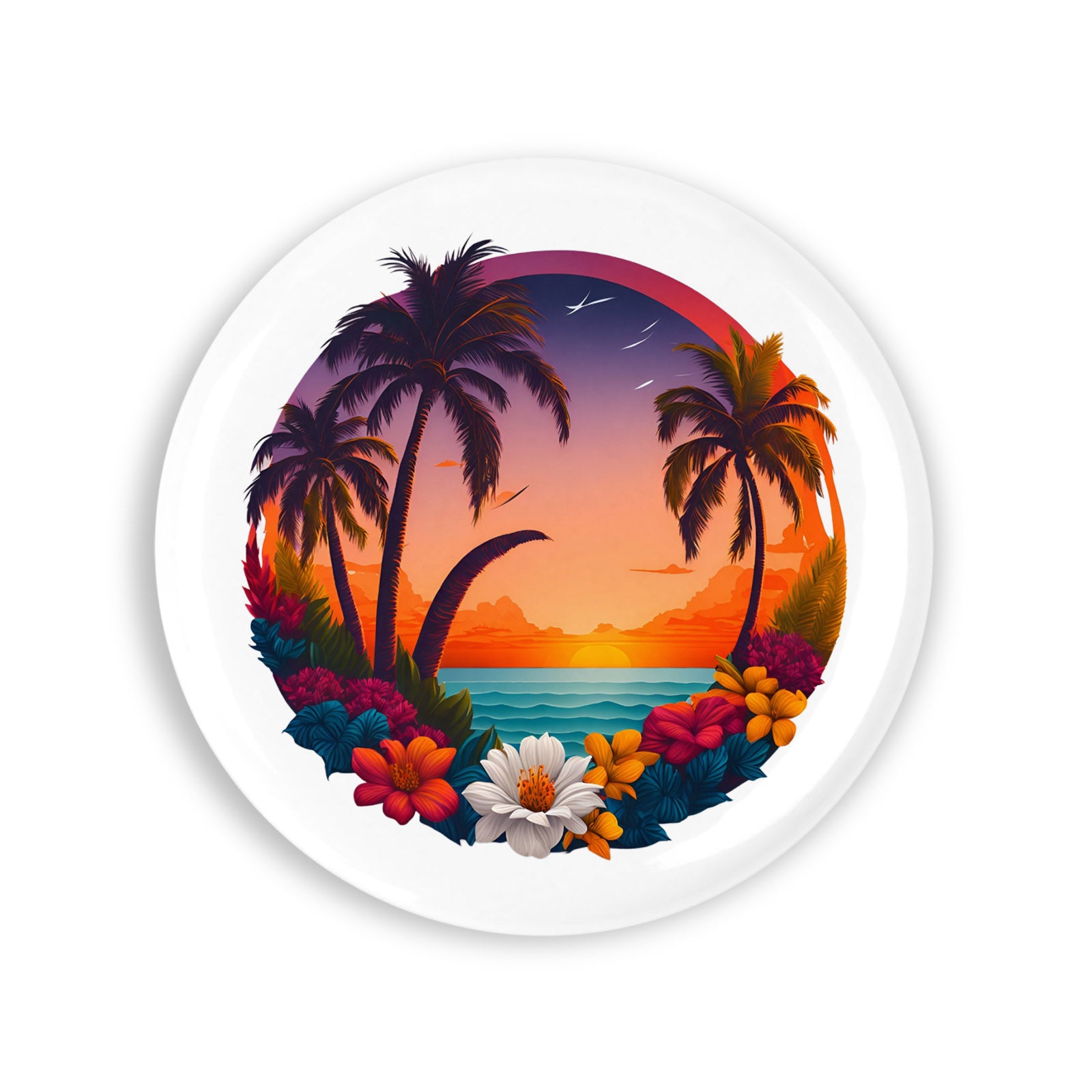 - Set 4 insigne, Palmieri si apus de soare, NO6602, Metal, 44 mm, Multicolor