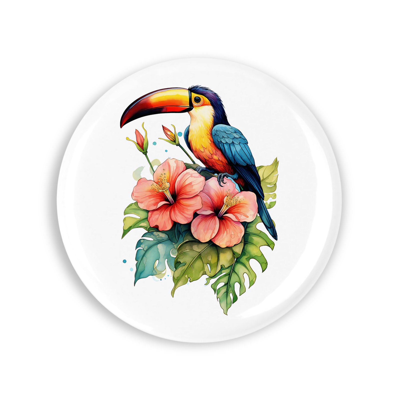 - Set 4 insigne, Papagal Tucan romantic, NO116, Metal, 44 mm, Multicolor