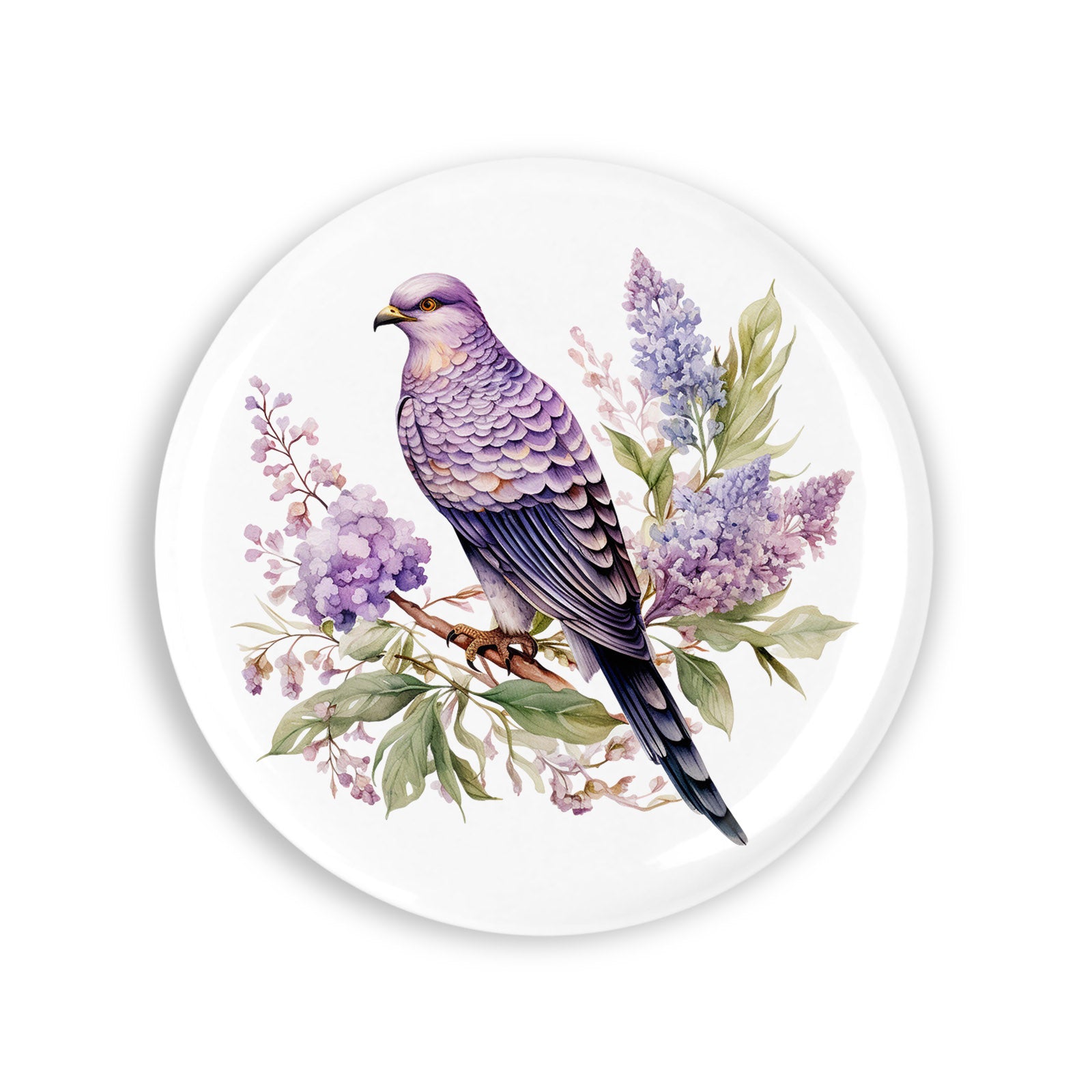 - Set 4 insigne, Pasare pe creanga de liliac, NO494, Metal, 44 mm, Multicolor
