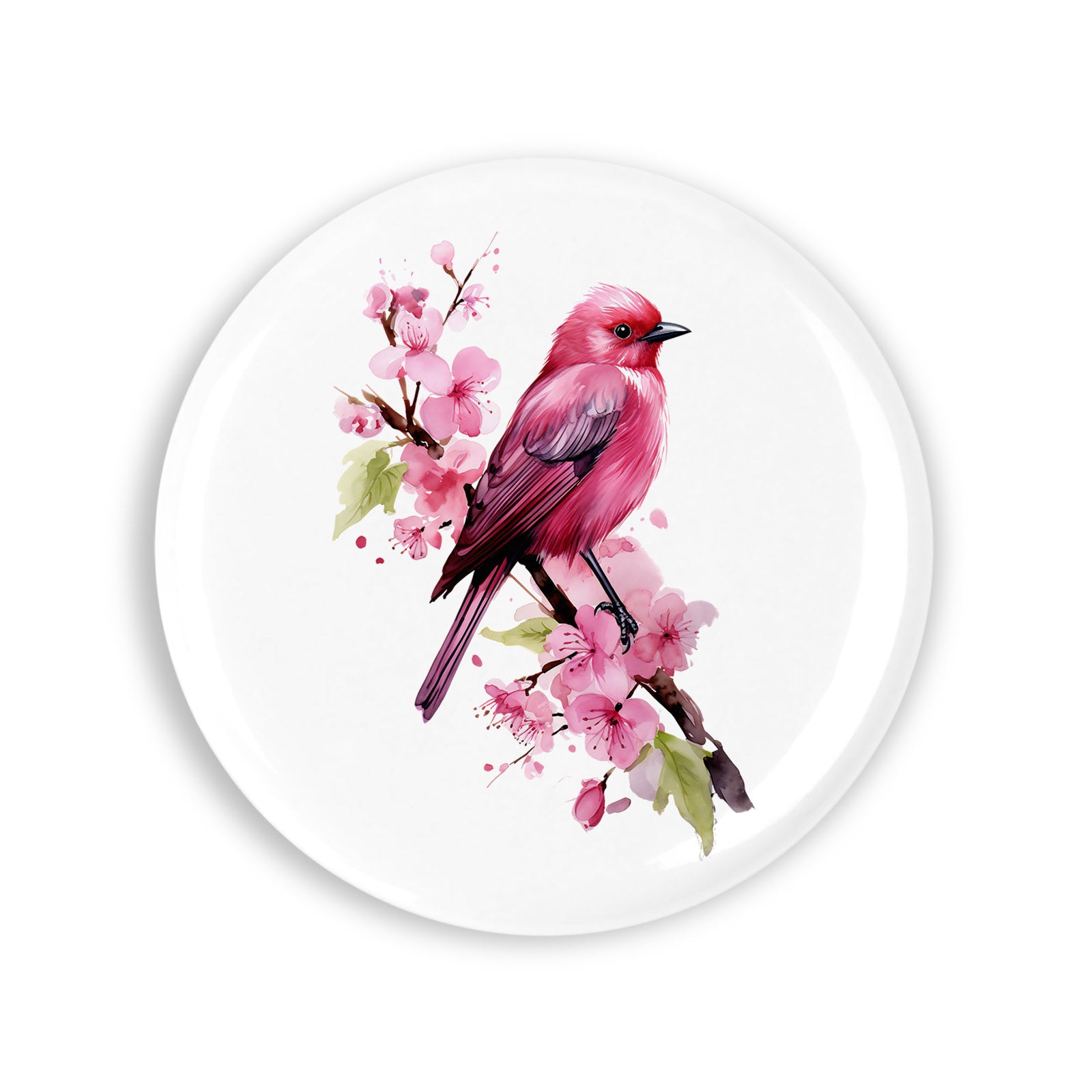 - Set 4 insigne, Pasare rosie pe crenguta inflorita, NO663, Metal, 44 mm, Multicolor
