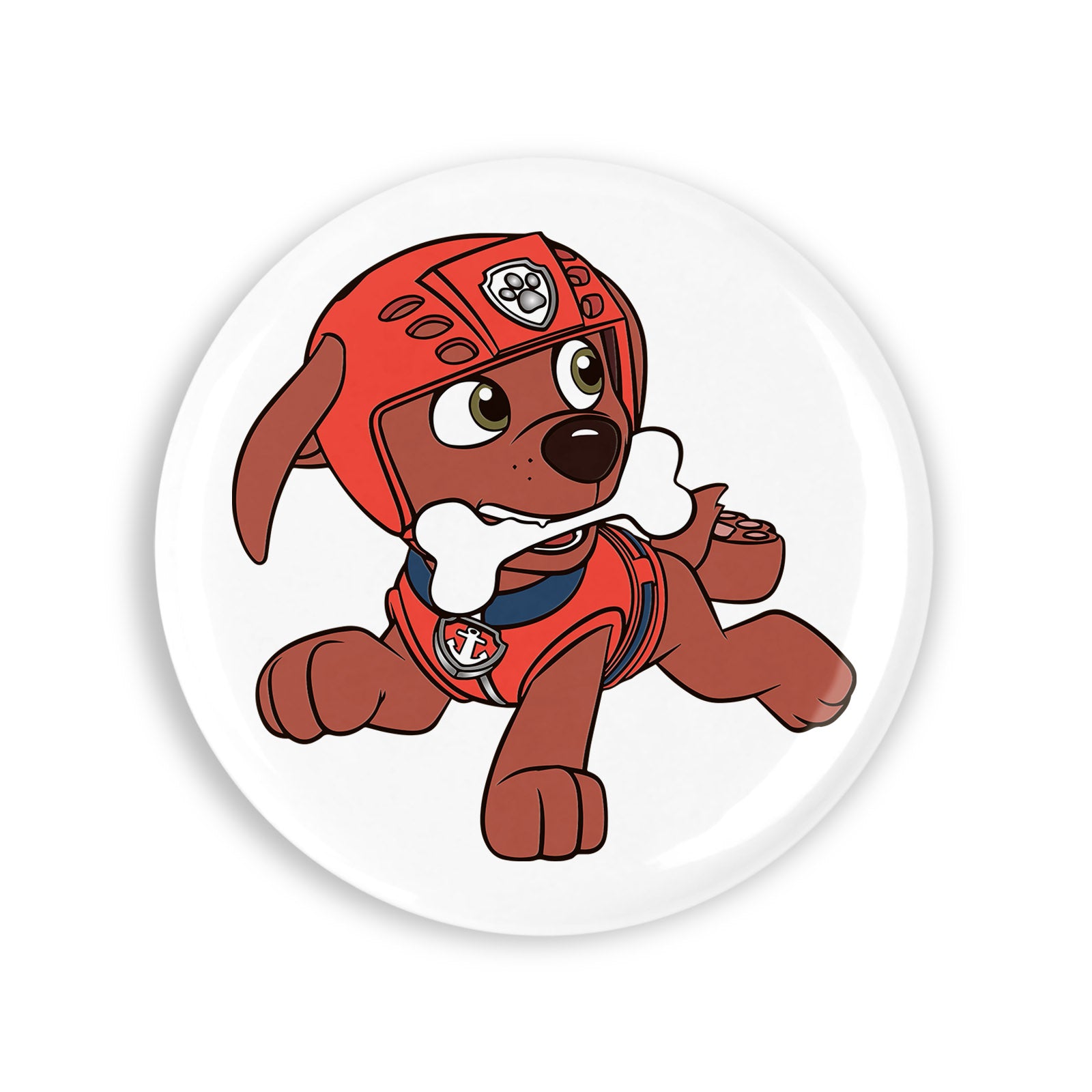- Set 4 insigne, Paw Patrol Zuma fuge cu osul in gura, NO6423, Metal, 44 mm, Multicolor