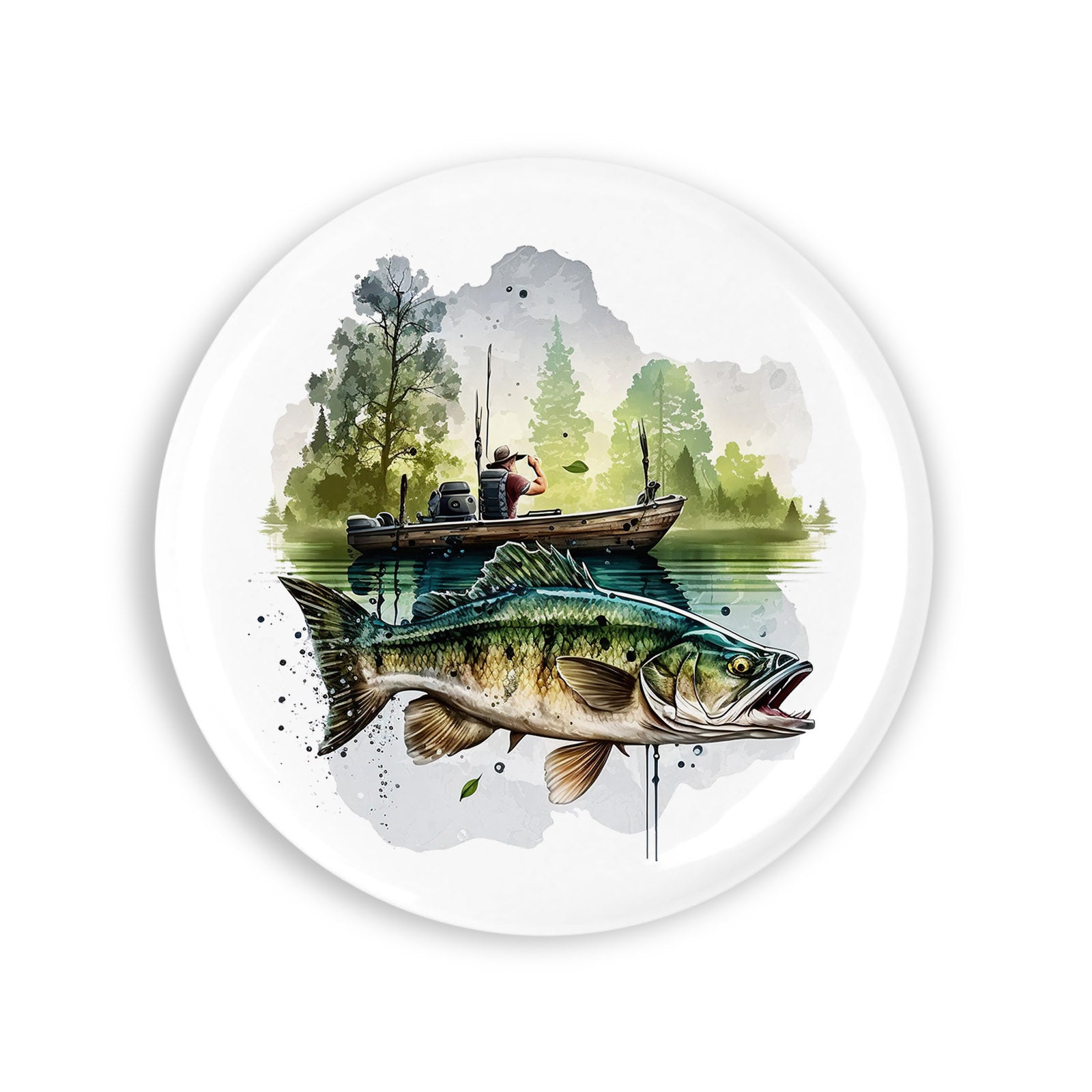 - Set 4 insigne, Pescar in barca pe lacul din padure, NO966, Metal, 44 mm, Multicolor
