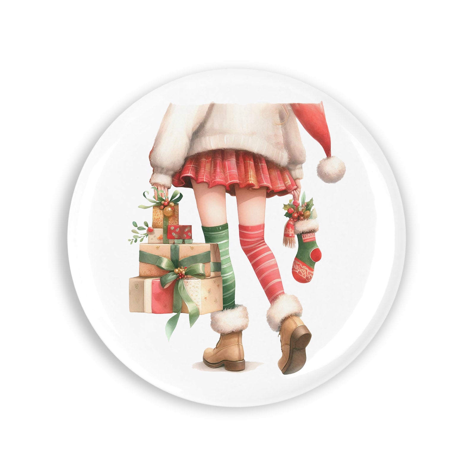 - Set 4 insigne, Picioare de femeie sexy cu cadouri de craciun Elisa, NO2694, Metal, 44 mm, Multicolor