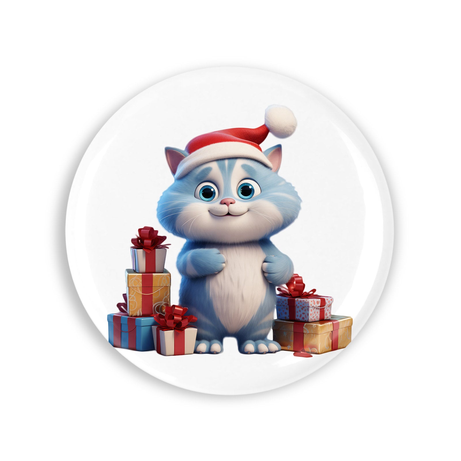 - Set 4 insigne, Pisica albastra cu cadouri de craciun, NO4708, Metal, 44 mm, Multicolor