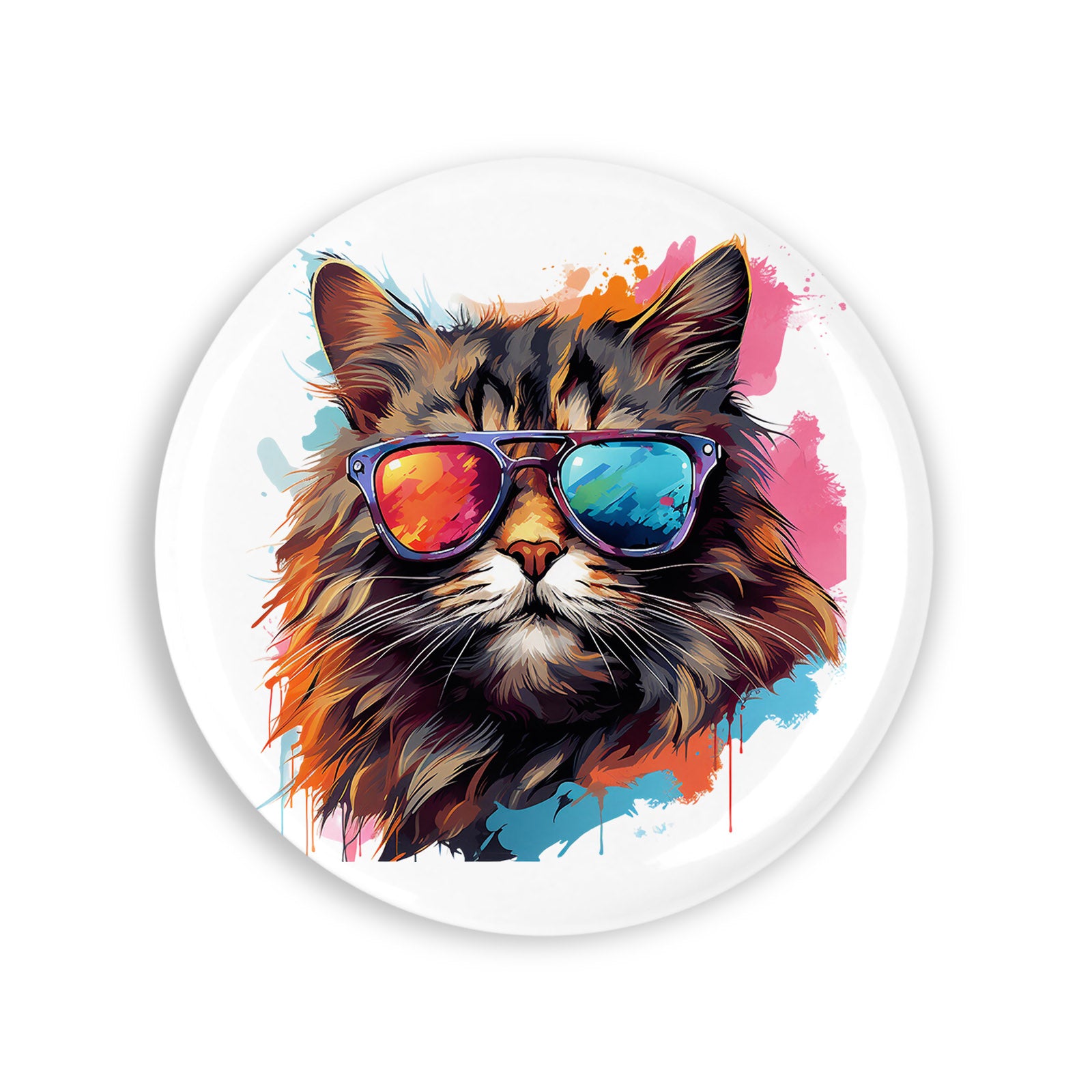 - Set 4 insigne, Pisica ciufulita cu ochelari, NO2236, Metal, 44 mm, Multicolor