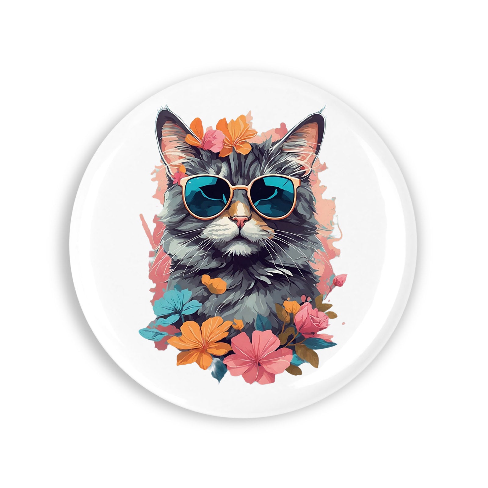 - Set 4 insigne, Pisica cu flori in par, NO6648, Metal, 44 mm, Multicolor