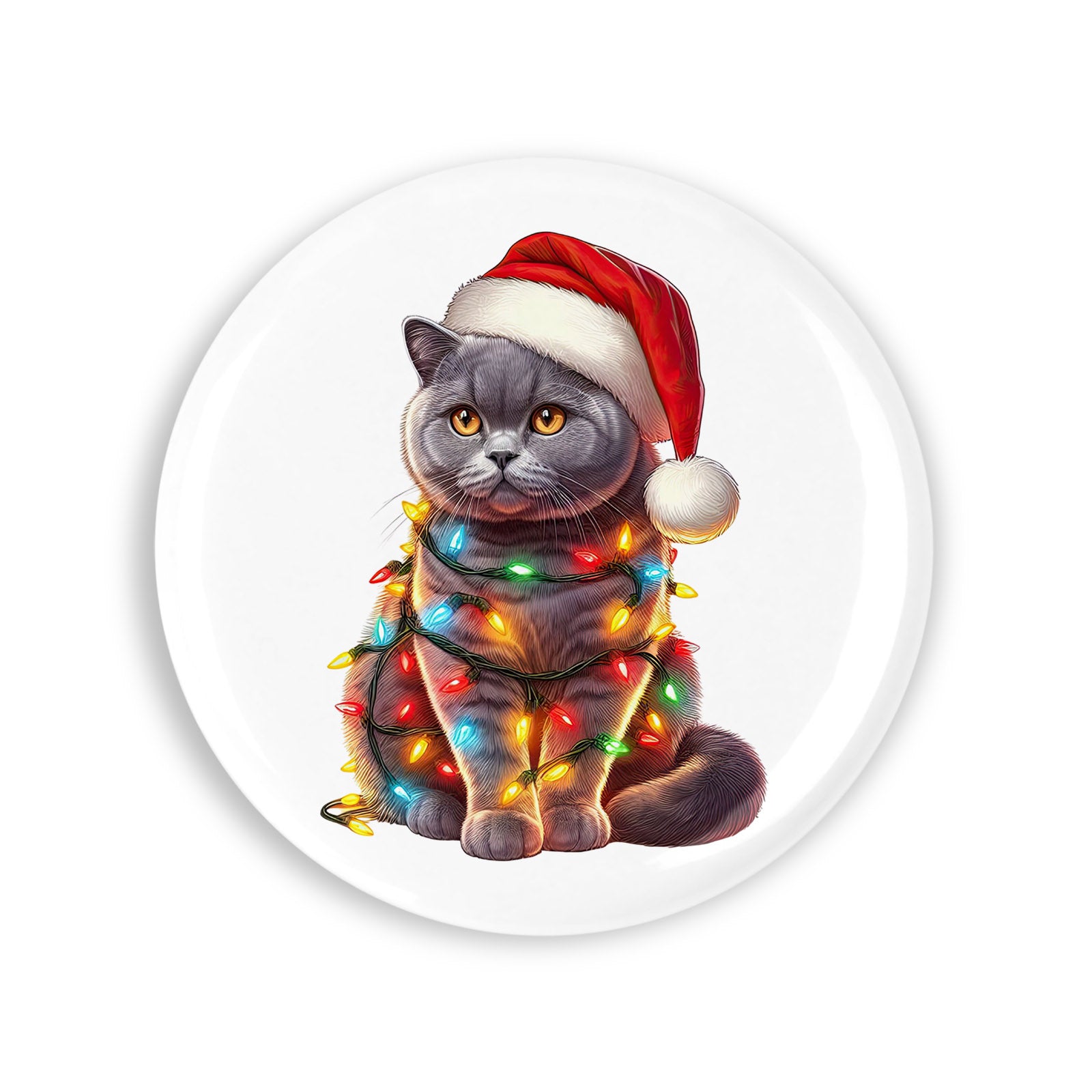 - Set 4 insigne, Pisica de craciun British Shorthair, NO1663, Metal, 44 mm, Multicolor