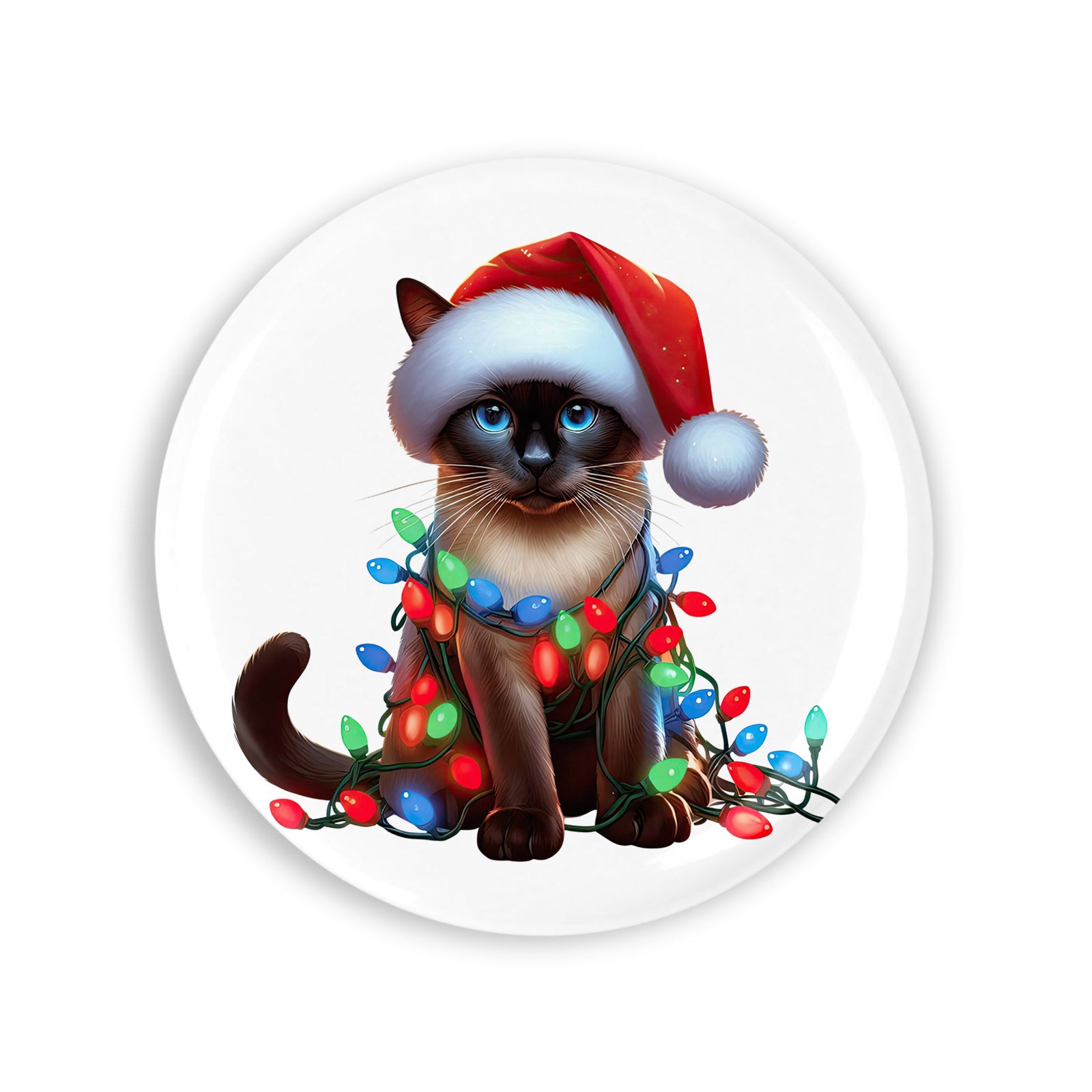 - Set 4 insigne, Pisica de craciun Siameza, NO726, Metal, 44 mm, Multicolor
