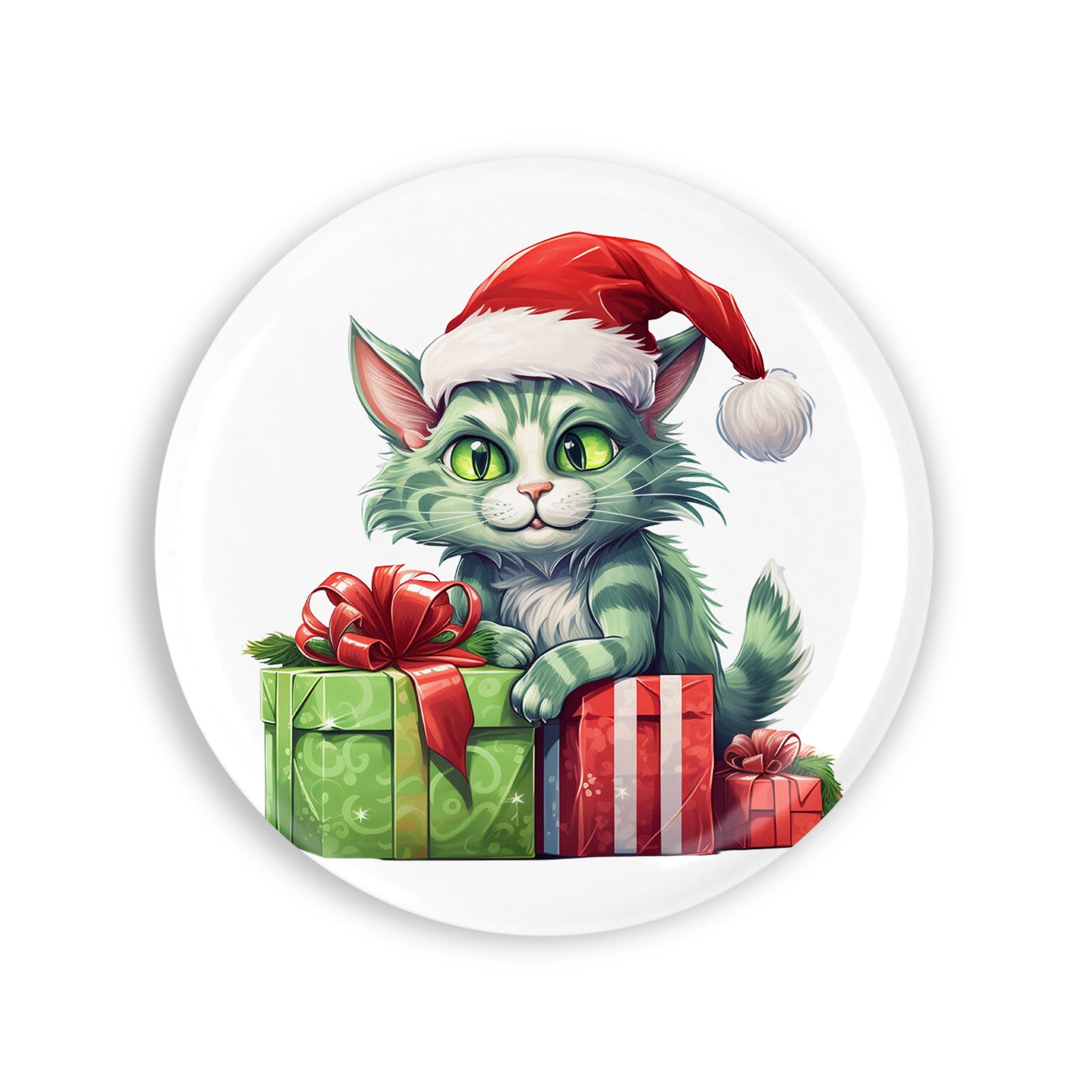 - Set 4 insigne, Pisica fericita sta pe cadourile de craciun, NO2772, Metal, 44 mm, Multicolor