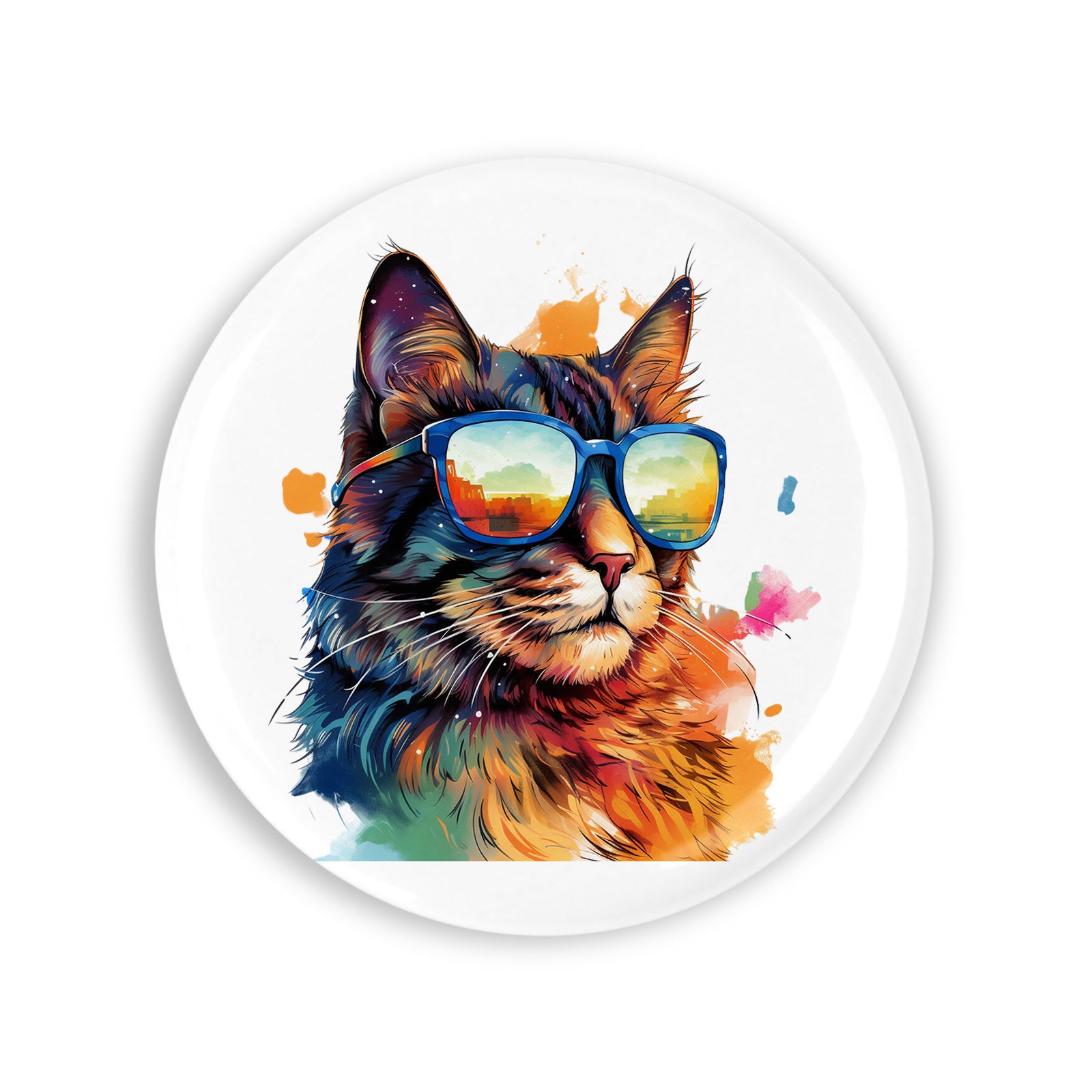- Set 4 insigne, Pisica ganditoare cu ochelari, NO4290, Metal, 44 mm, Multicolor