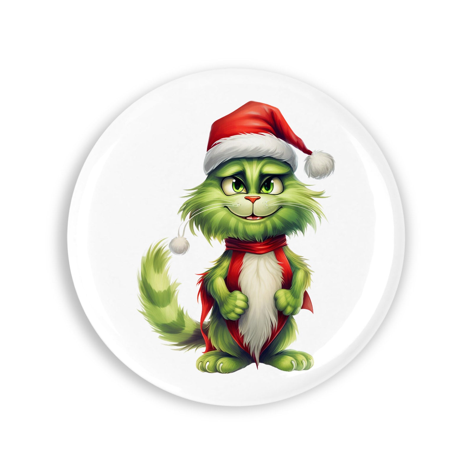 - Set 4 insigne, Pisica Grinch cu fular rosu, NO5738, Metal, 44 mm, Multicolor