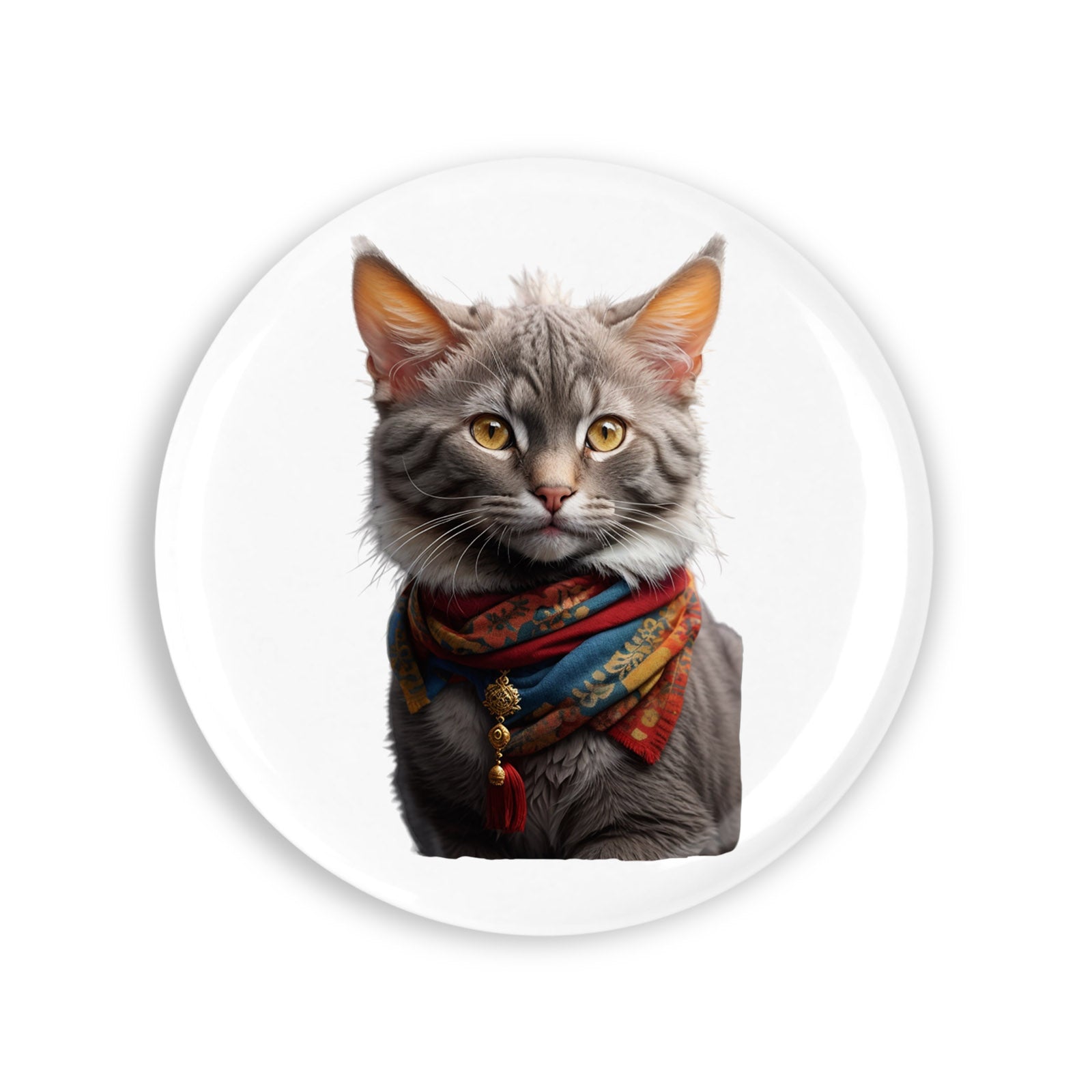 - Set 4 insigne, Pisica Lykoi cu bandana, NO8477, Metal, 44 mm, Multicolor