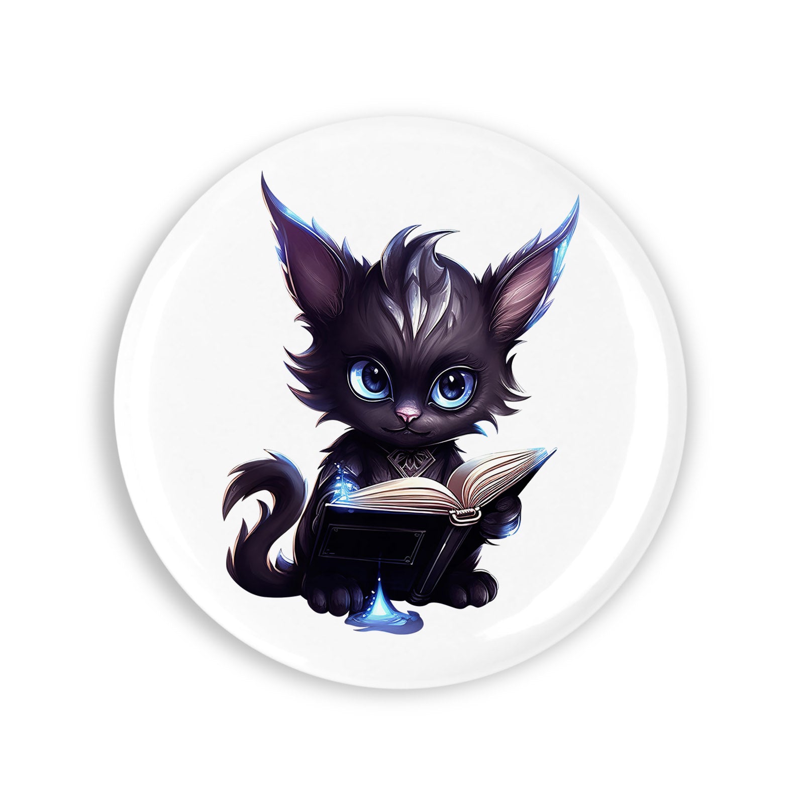 - Set 4 insigne, Pisica neagra citeste o carte, NO3884, Metal, 44 mm, Multicolor
