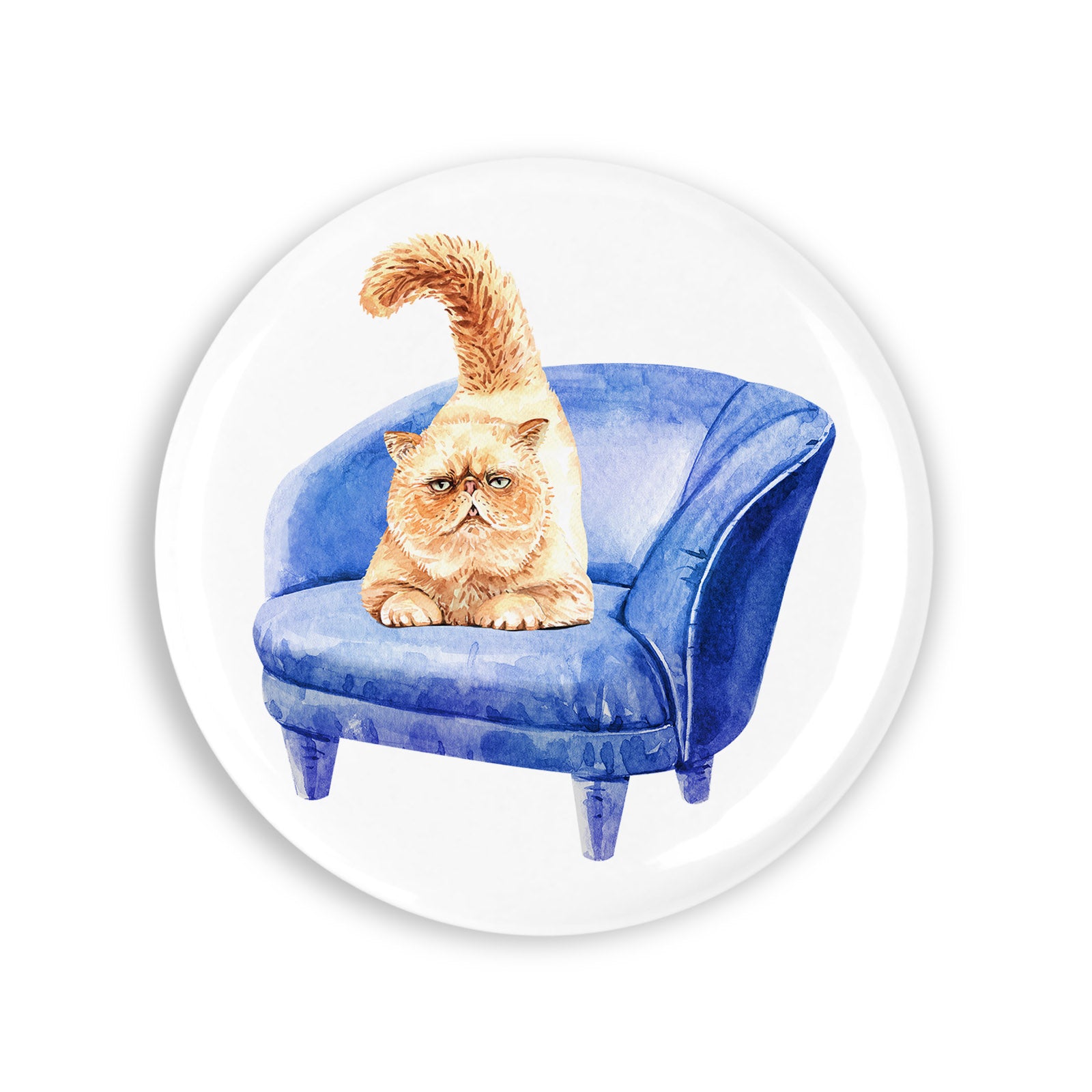 - Set 4 insigne, Pisica pe fotoliu cu coada in sus, NO11275, Metal, 44 mm, Multicolor