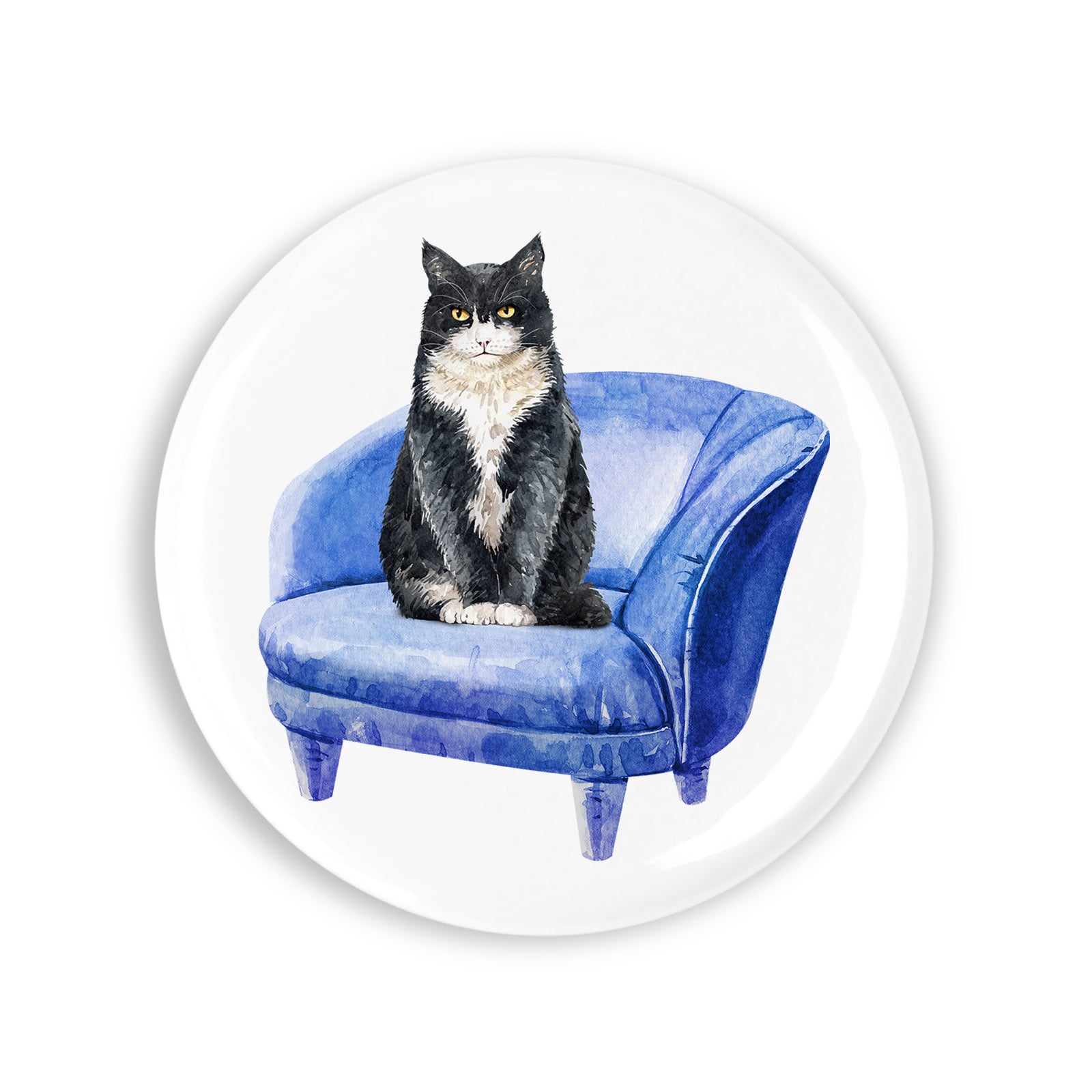 - Set 4 insigne, Pisica pe fotoliu, NO11276, Metal, 44 mm, Multicolor