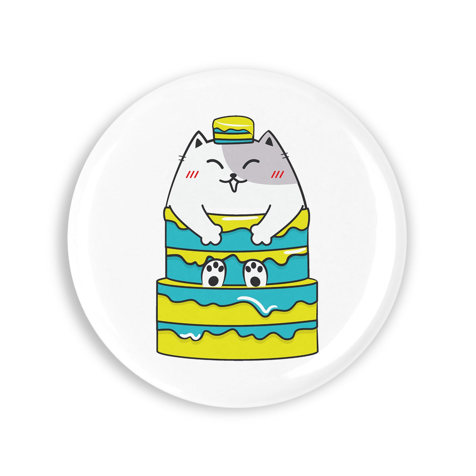 - Set 4 insigne, Pisica pe tort, NO11277, Metal, 44 mm, Multicolor