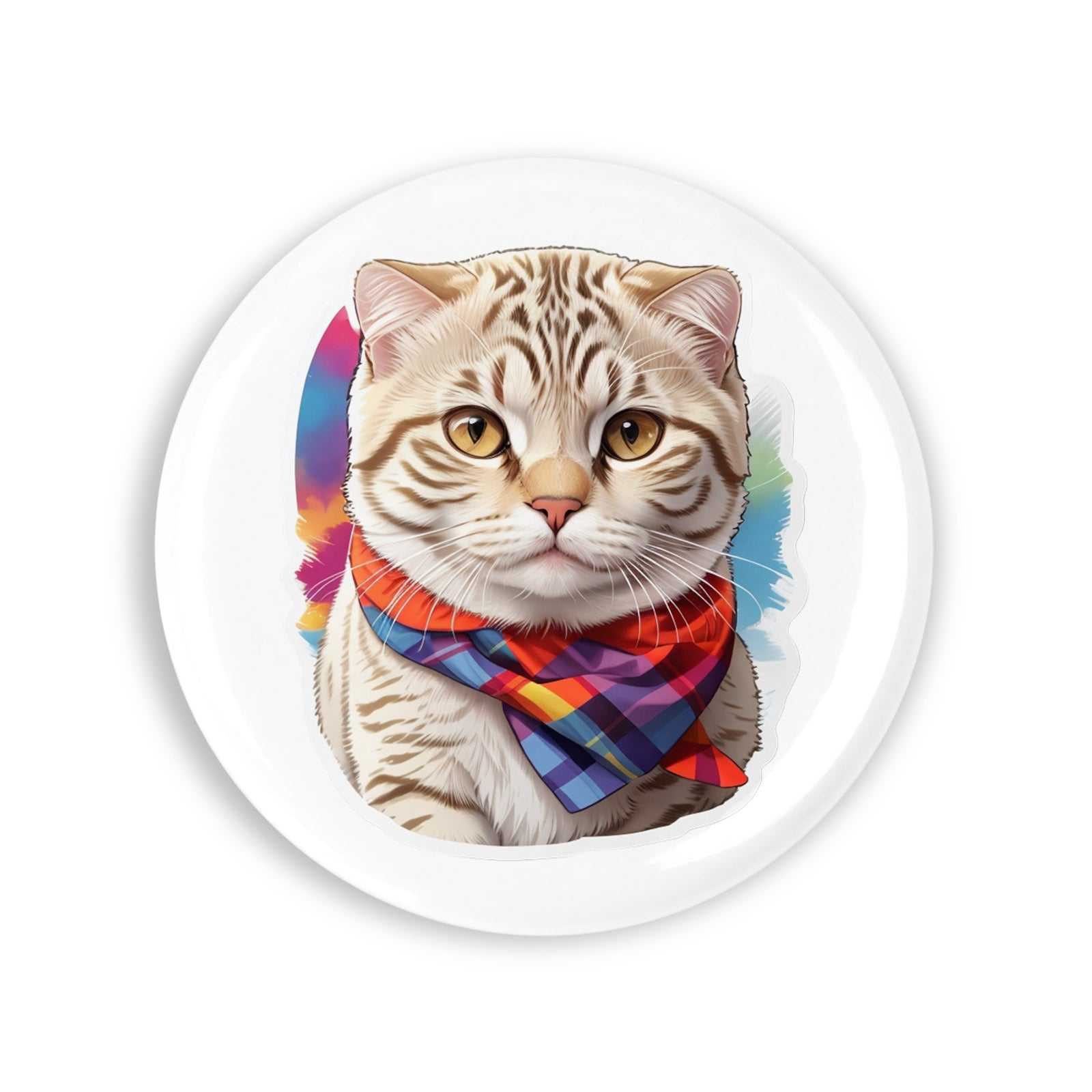 - Set 4 insigne, Pisica Scottish Fold cu bandana, NO8843, Metal, 44 mm, Multicolor