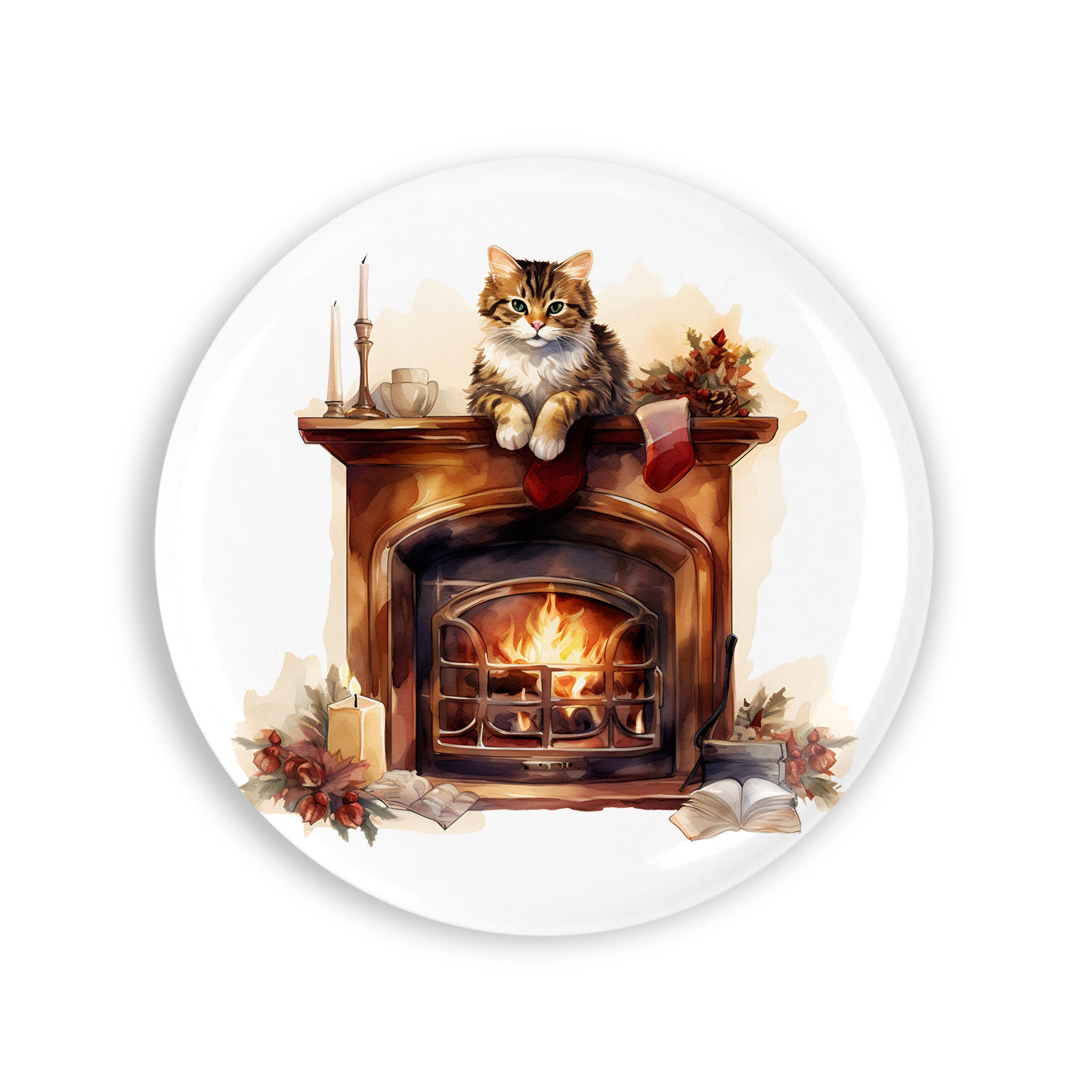 - Set 4 insigne, Pisica sus pe semineu, NO5043, Metal, 44 mm, Multicolor