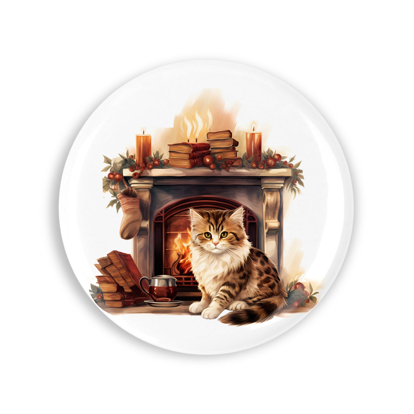 - Set 4 insigne, Pisica tigrata bea cafea in fata semineului, NO6136, Metal, 44 mm, Multicolor