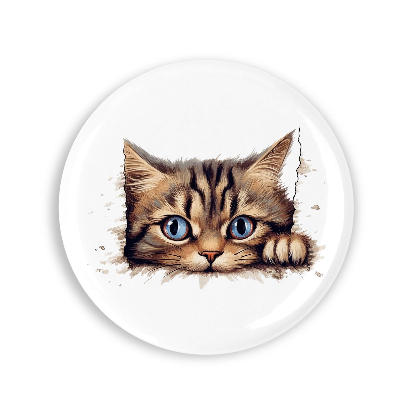 - Set 4 insigne, Pisica tigrata cu ochi albastri, NO2243, Metal, 44 mm, Multicolor