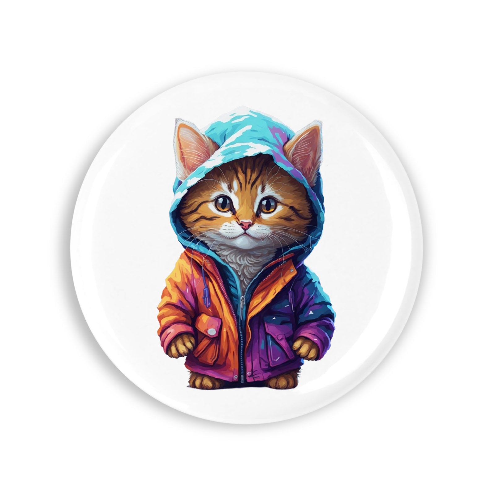 - Set 4 insigne, Pisicuta in jacheta cu gluga, NO7473, Metal, 44 mm, Multicolor